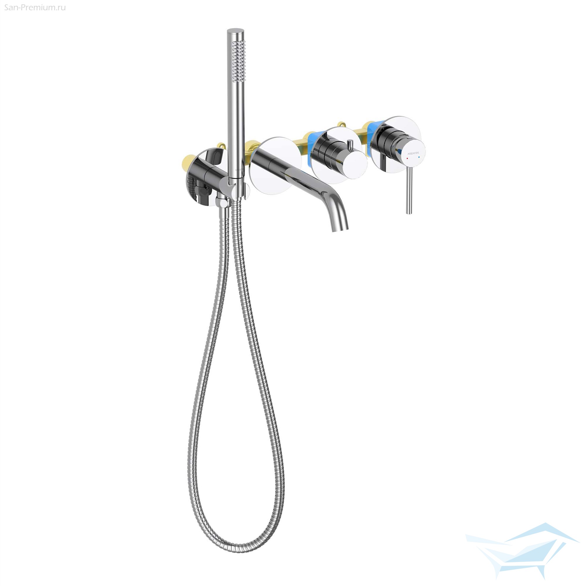 Смеситель для ванны Aquatek Европа встраиваемый на 4 отв., внешняя и скрытая часть, хром