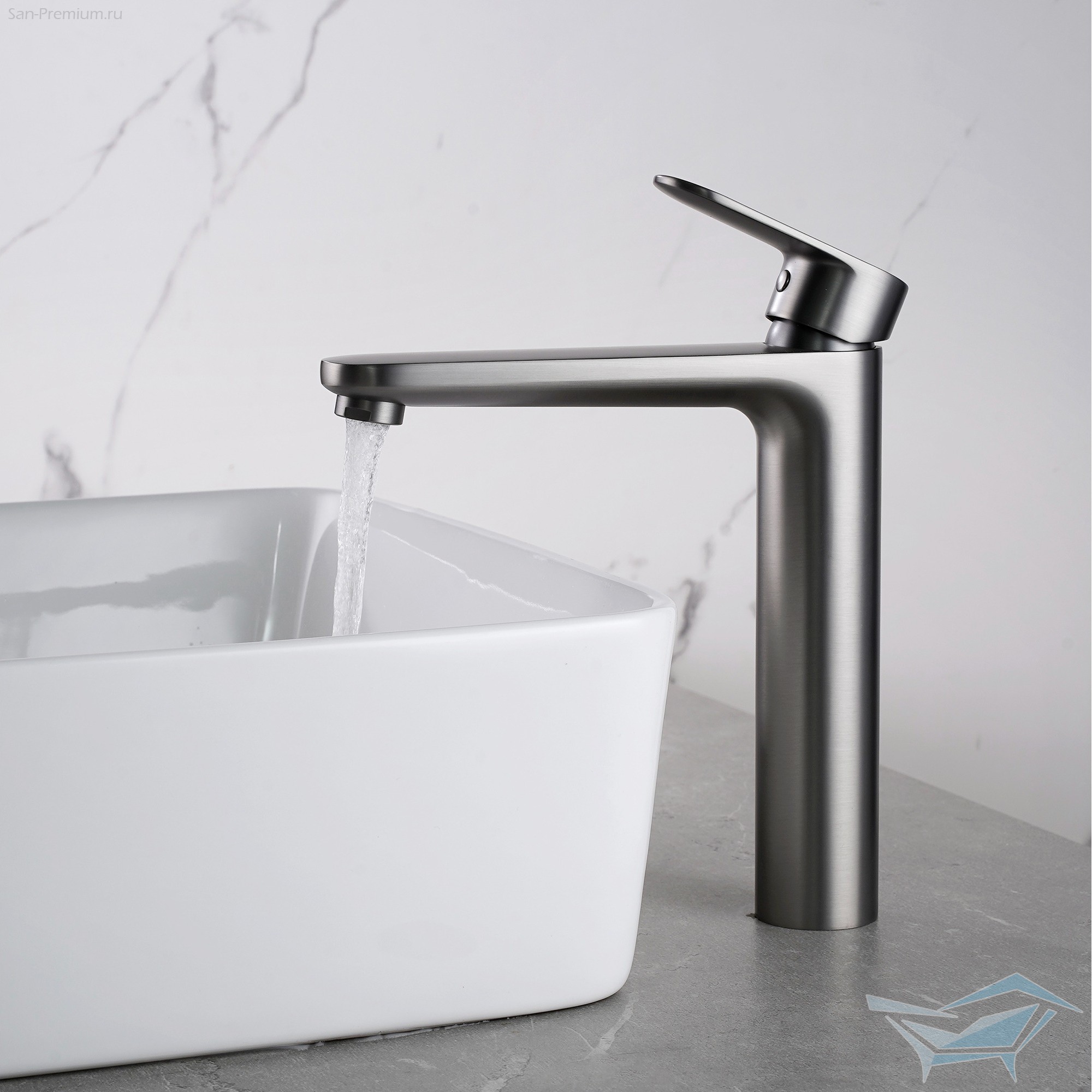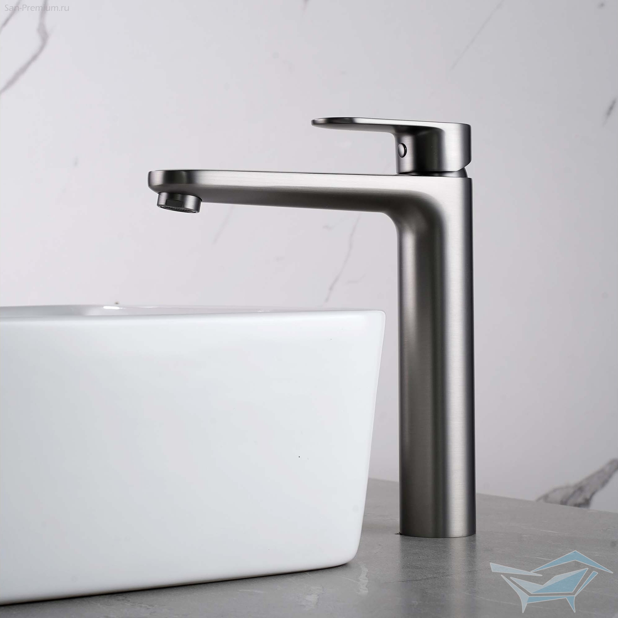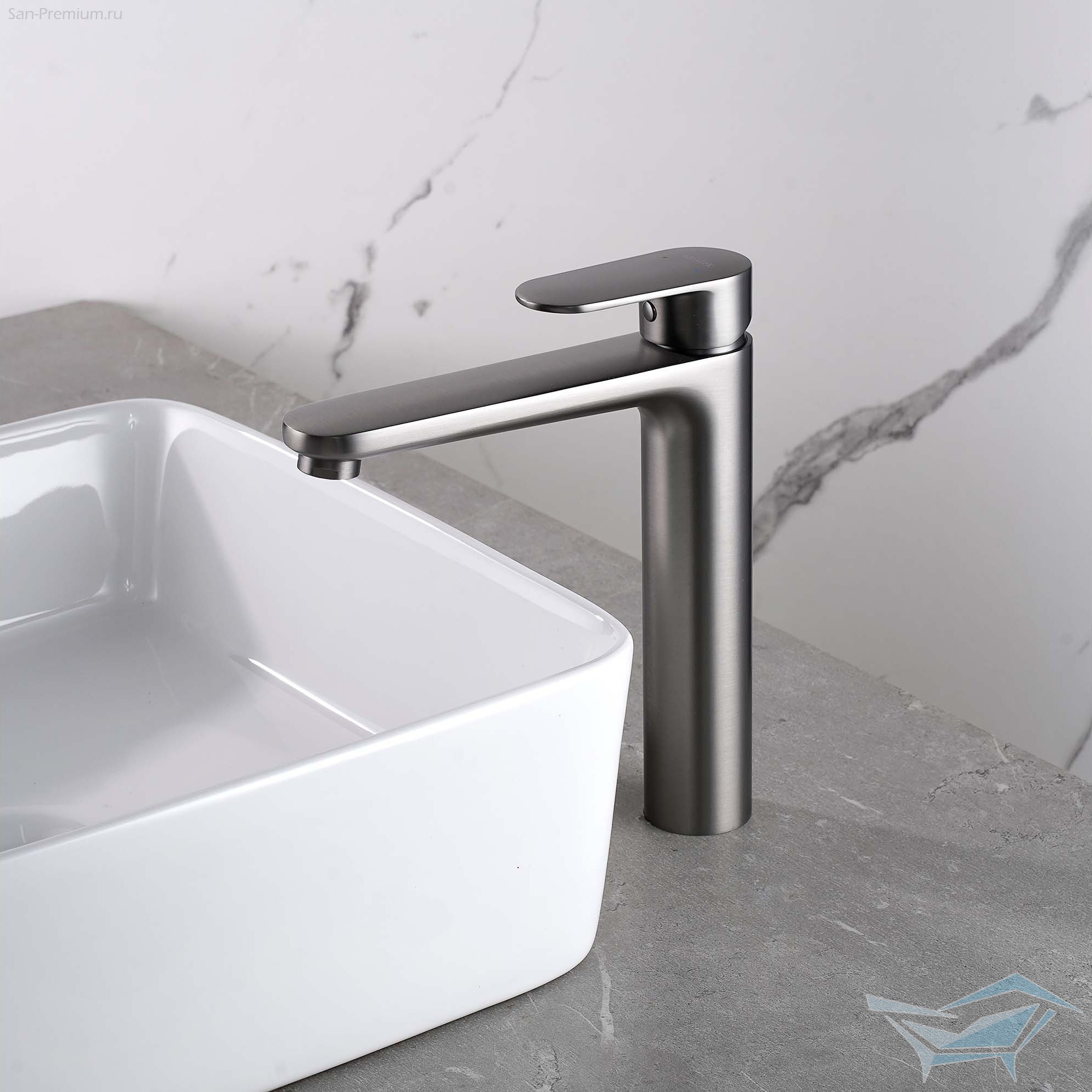 Смеситель для раковины Aquatek Ника высокий 190, без донного клапана, оружейная сталь / AQ1804BGM
