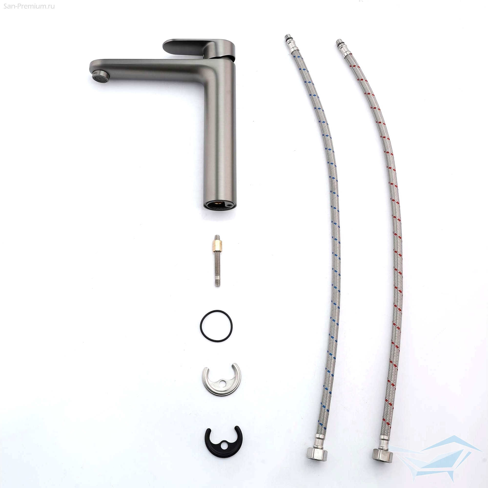 - Комплектация: смеситель, гибкая подводка, монтажный комплект