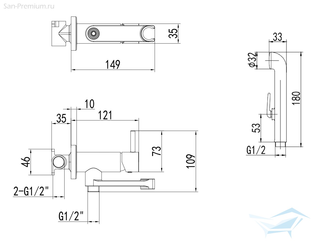 - Тип: смеситель с гигиеническим душем
