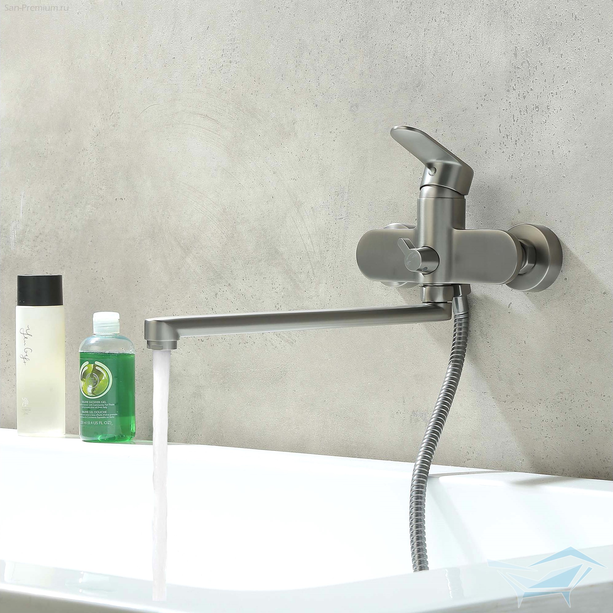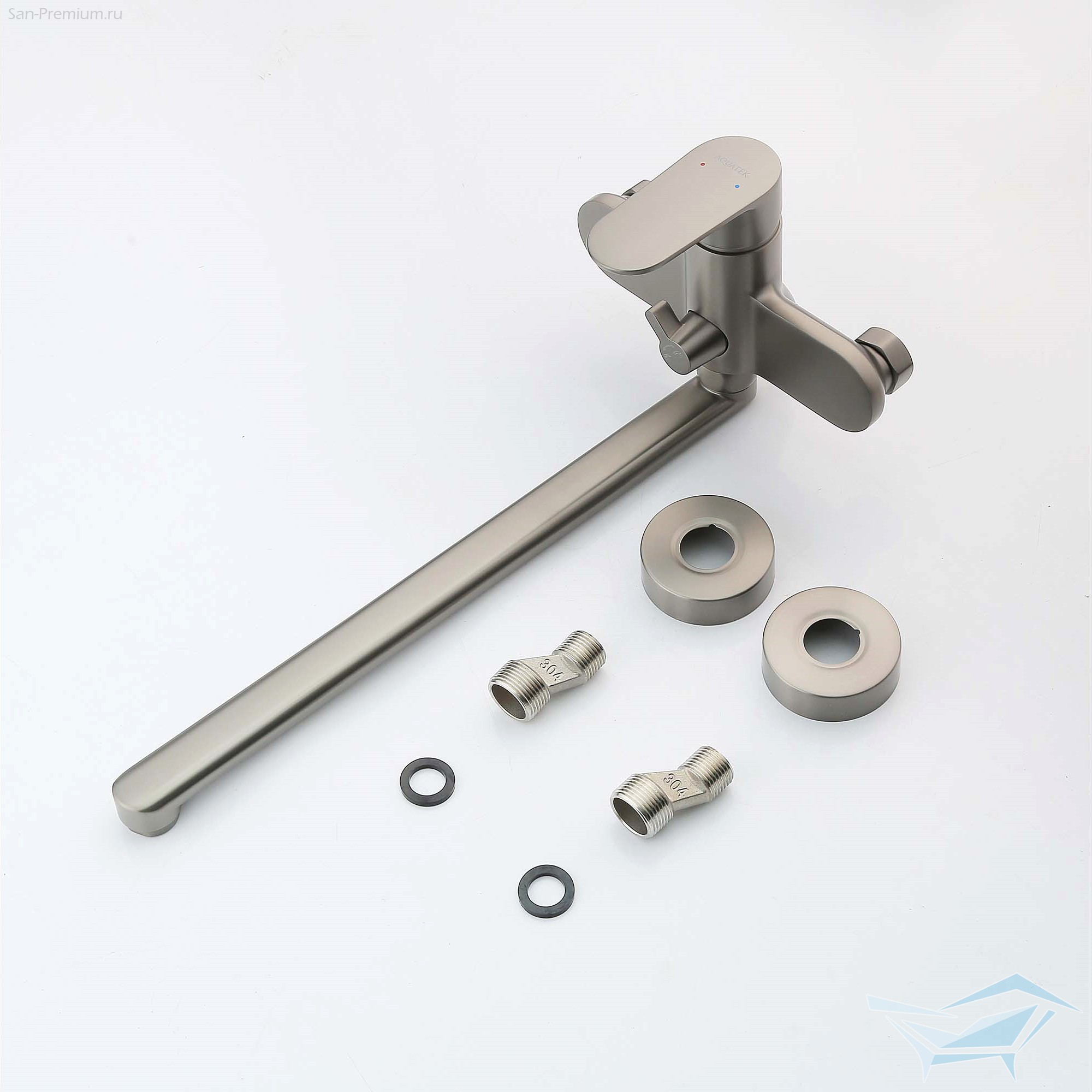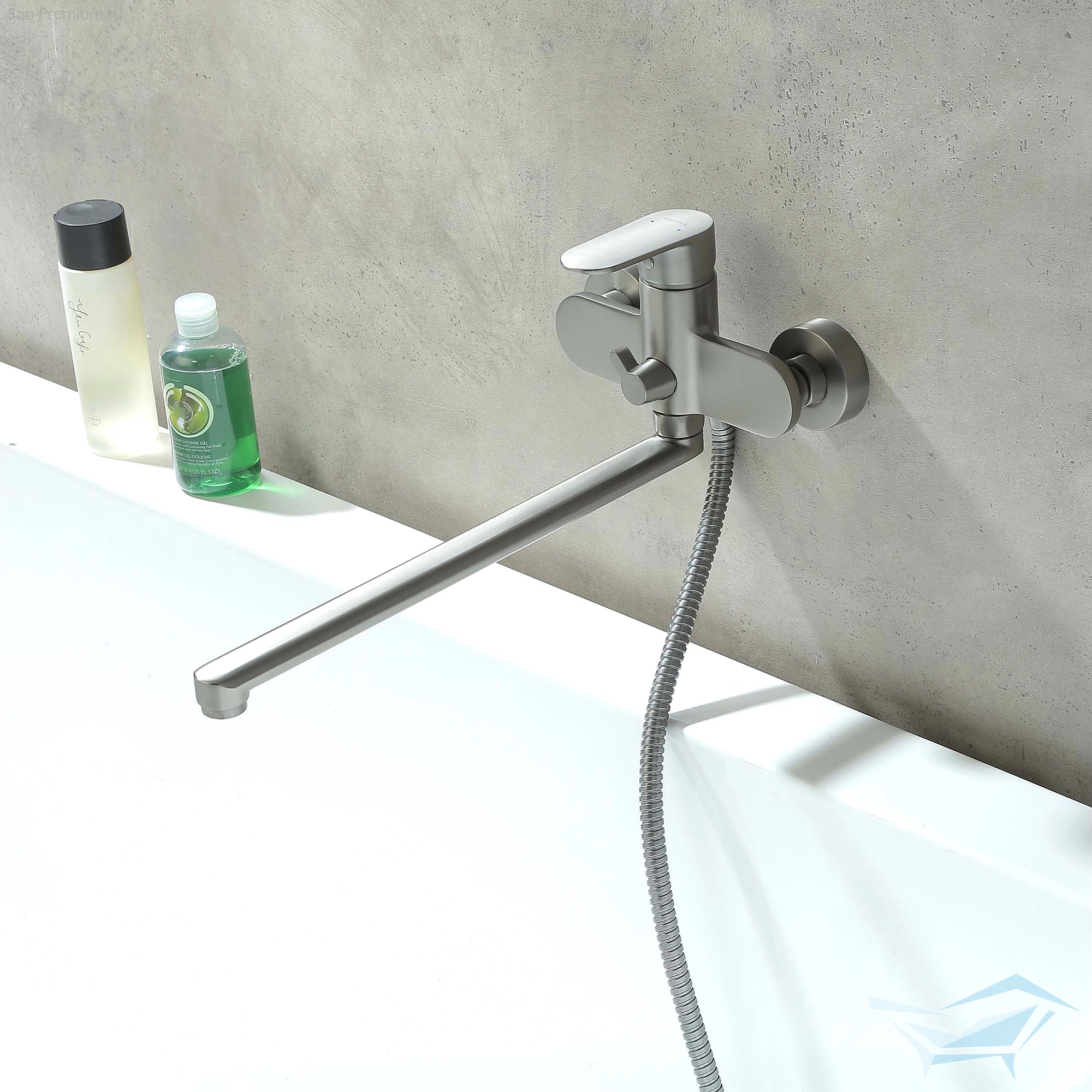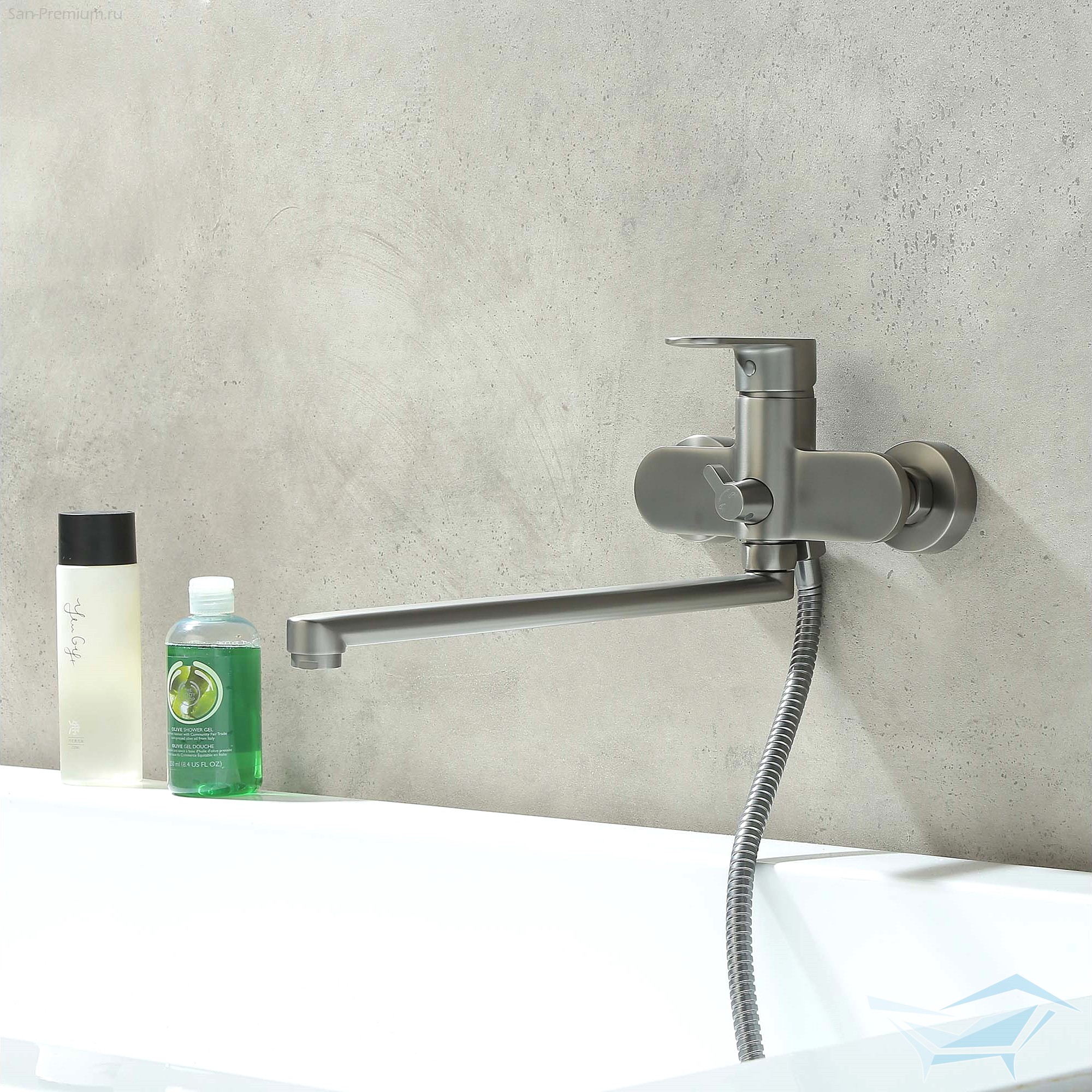 Смеситель для ванны Aquatek Ника, с длинным изливом, оружейная сталь / AQ1842BGM