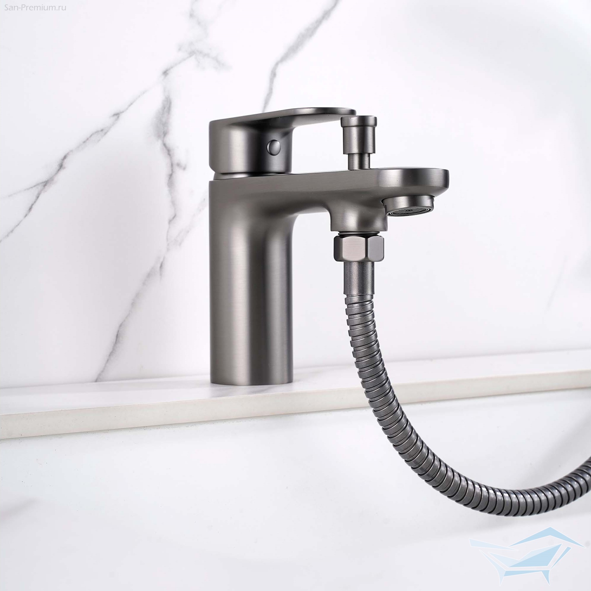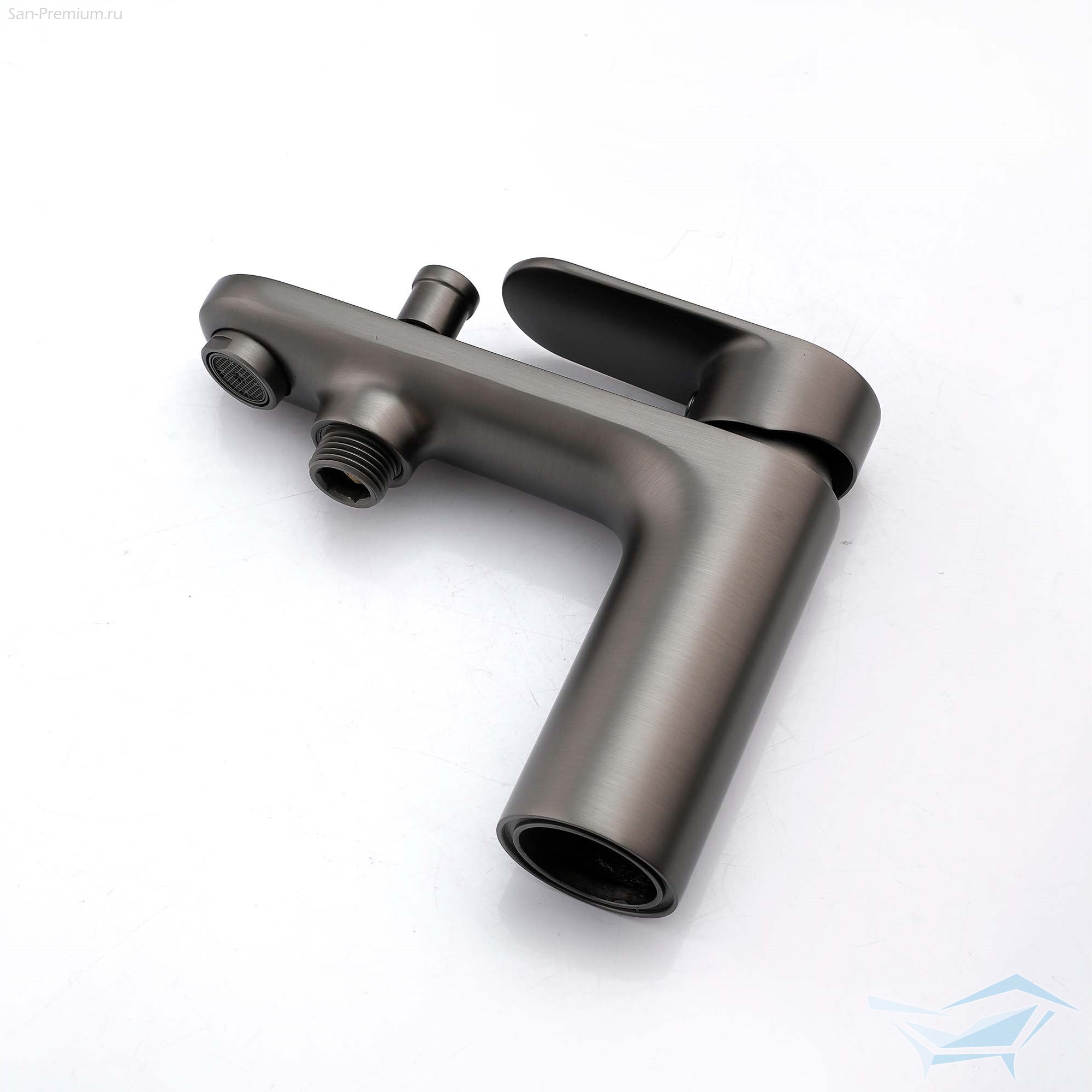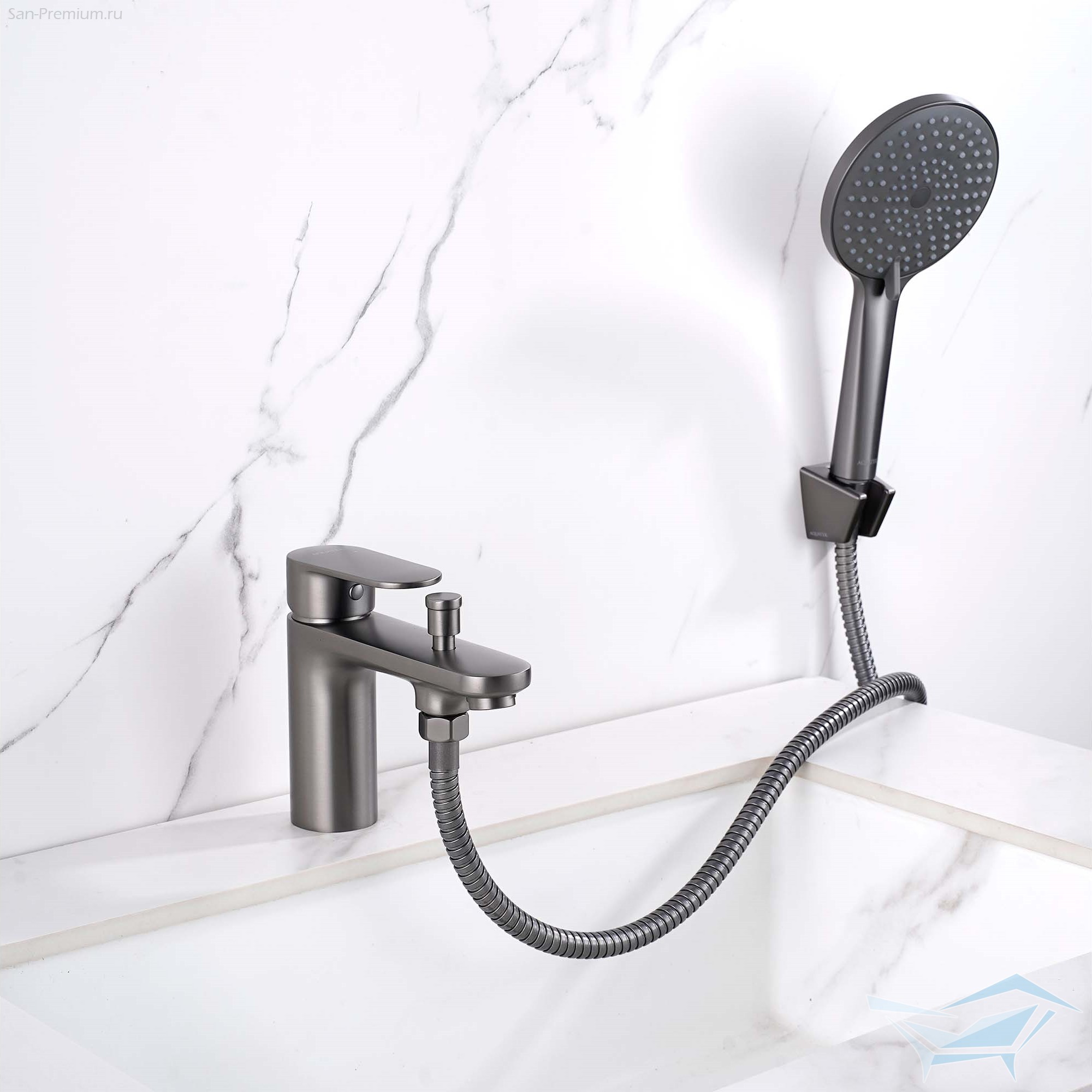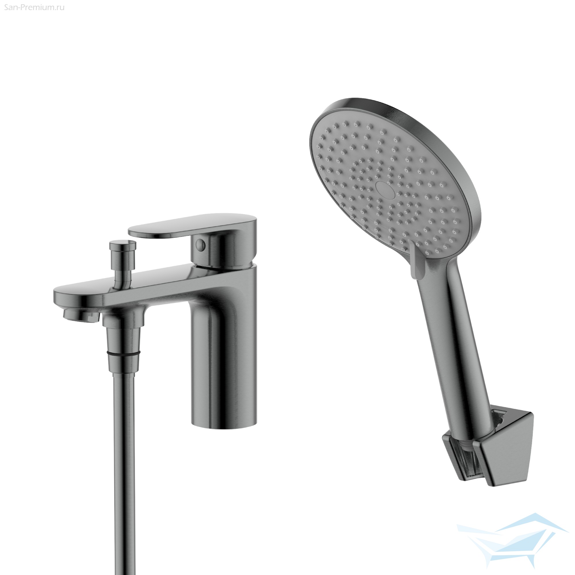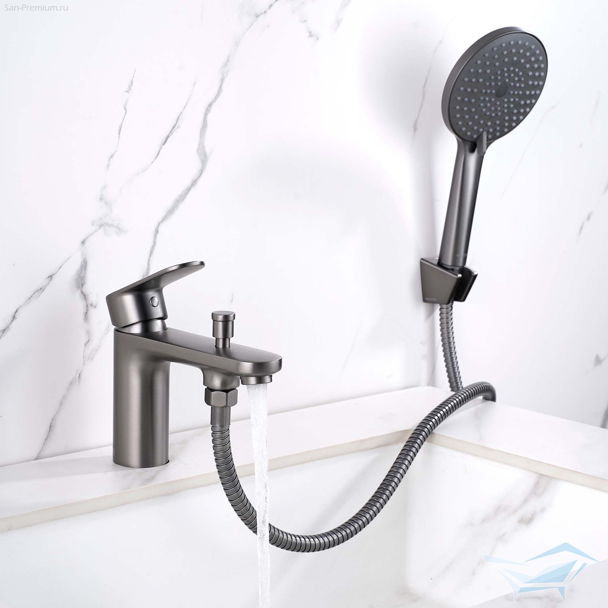 Смеситель врезной на борт ванны Aquatek Ника, на 1 отверстие, оружейная сталь