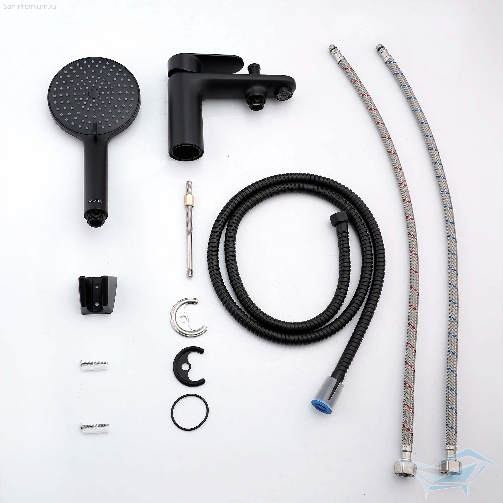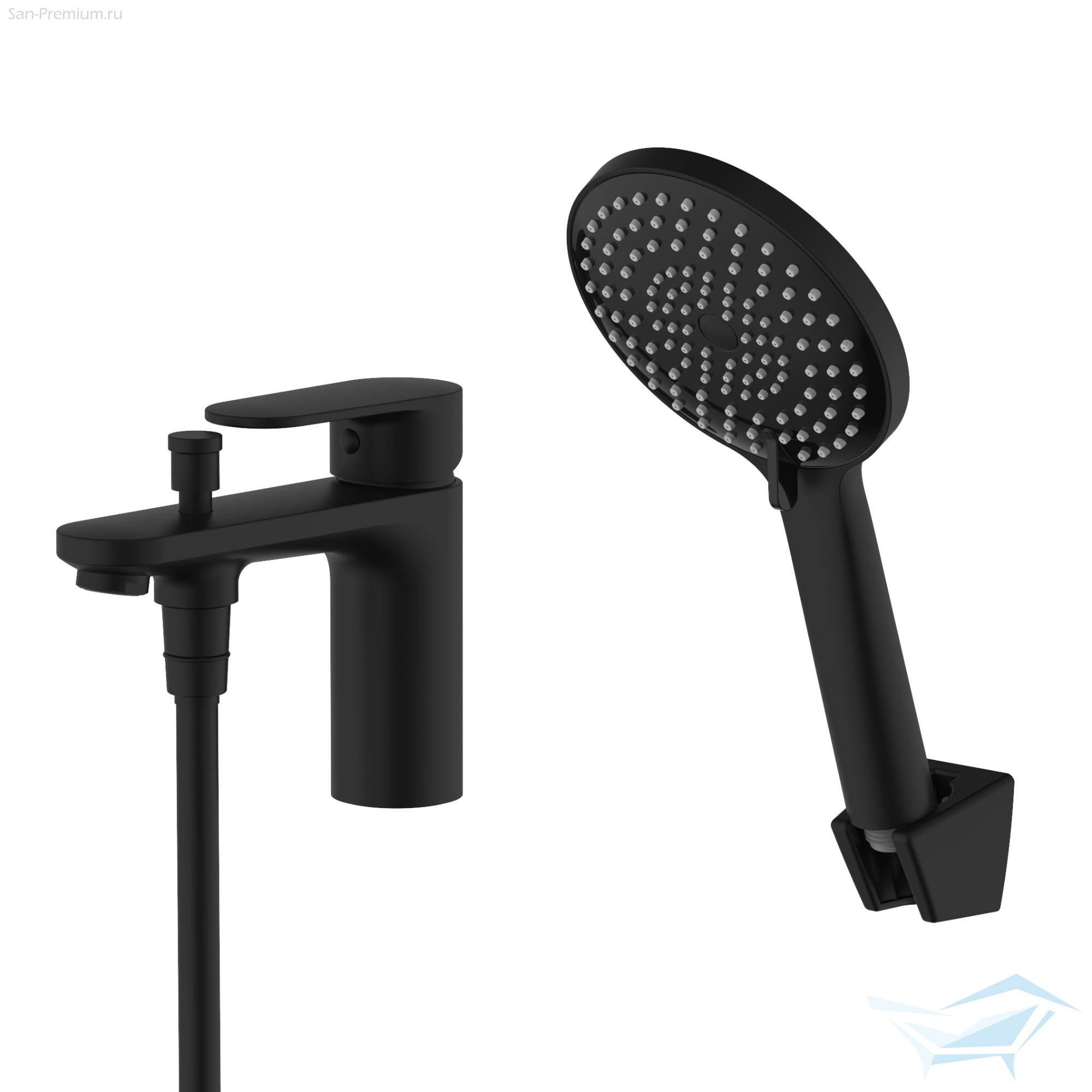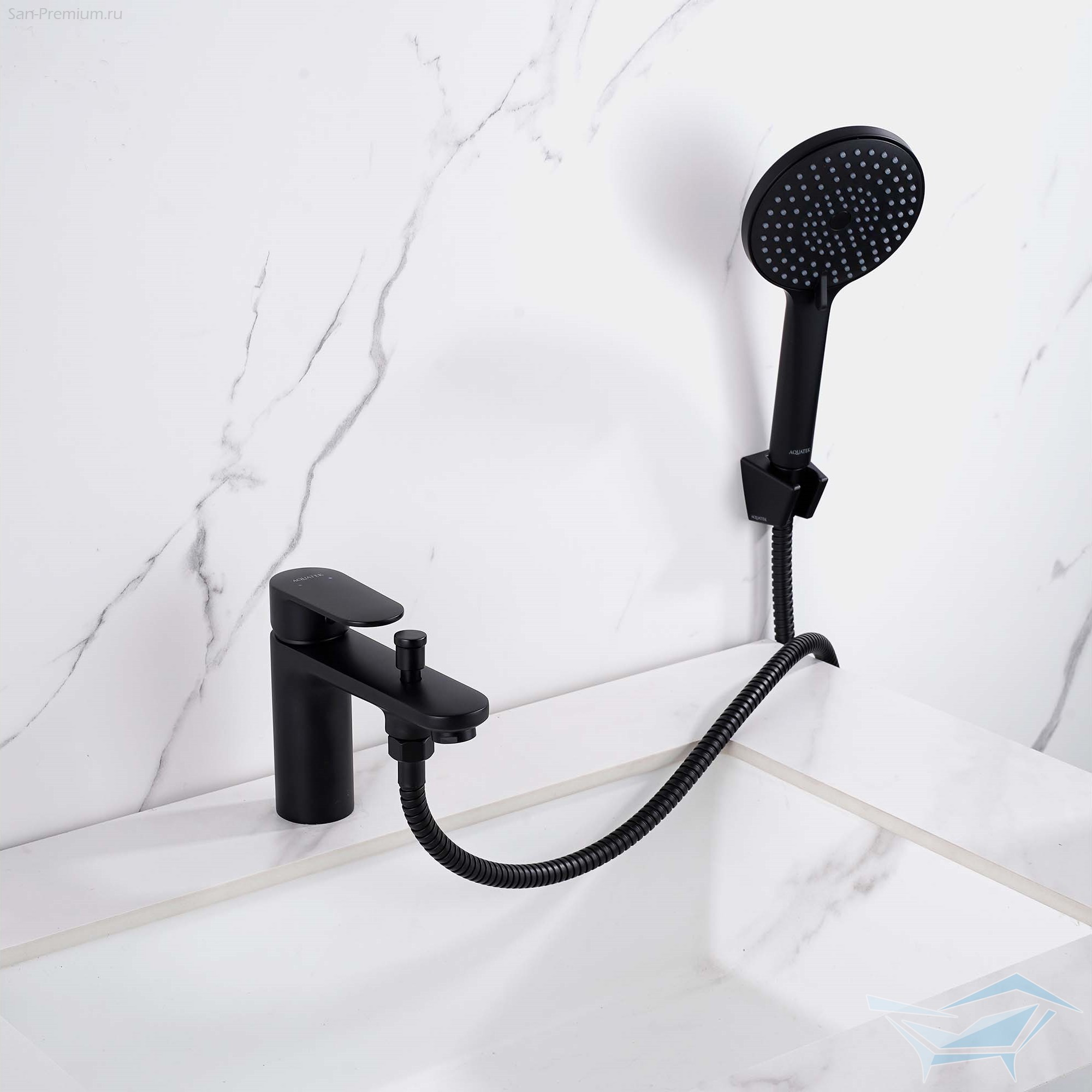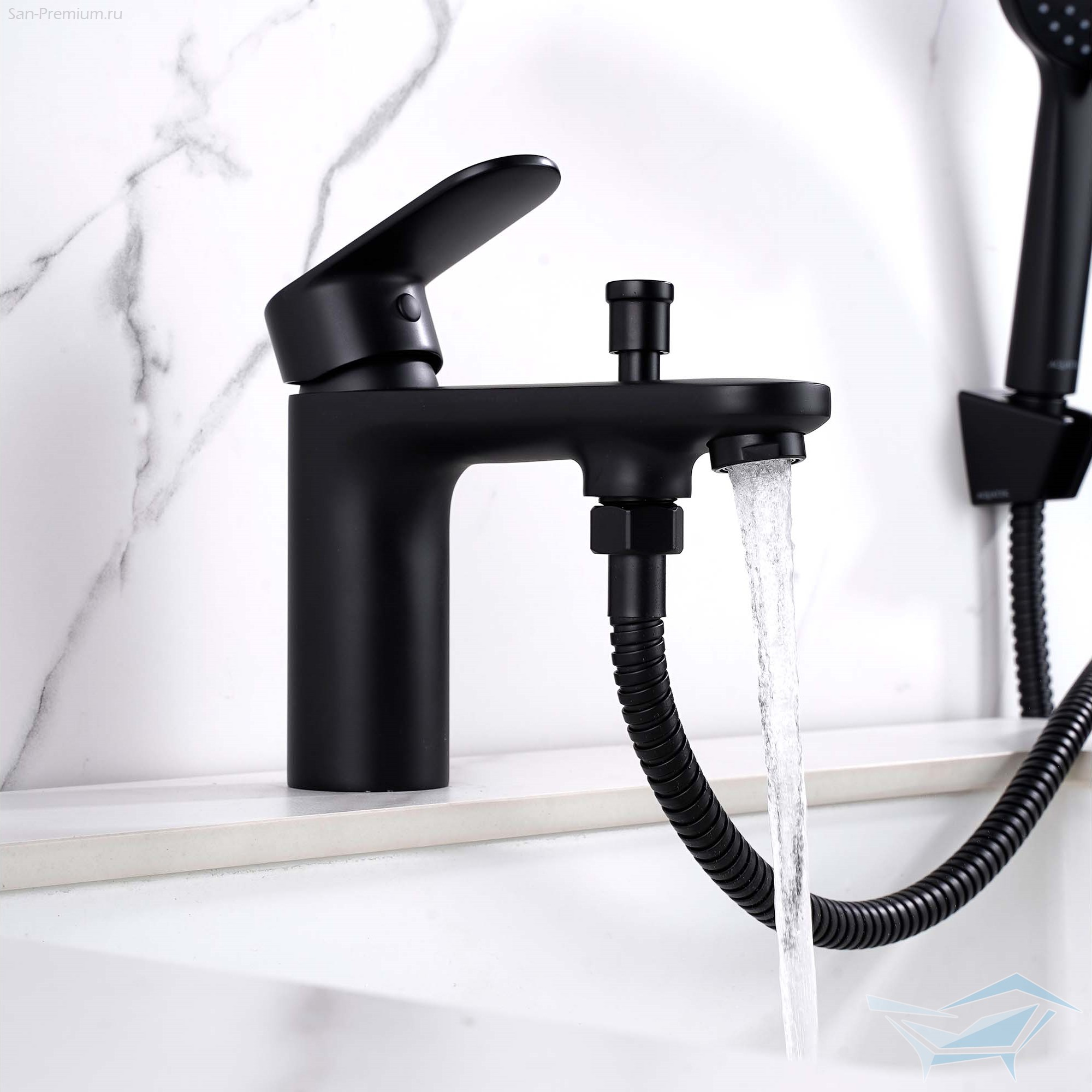 Смеситель врезной на борт ванны Aquatek Ника, на 1 отверстие, матовый чёрный