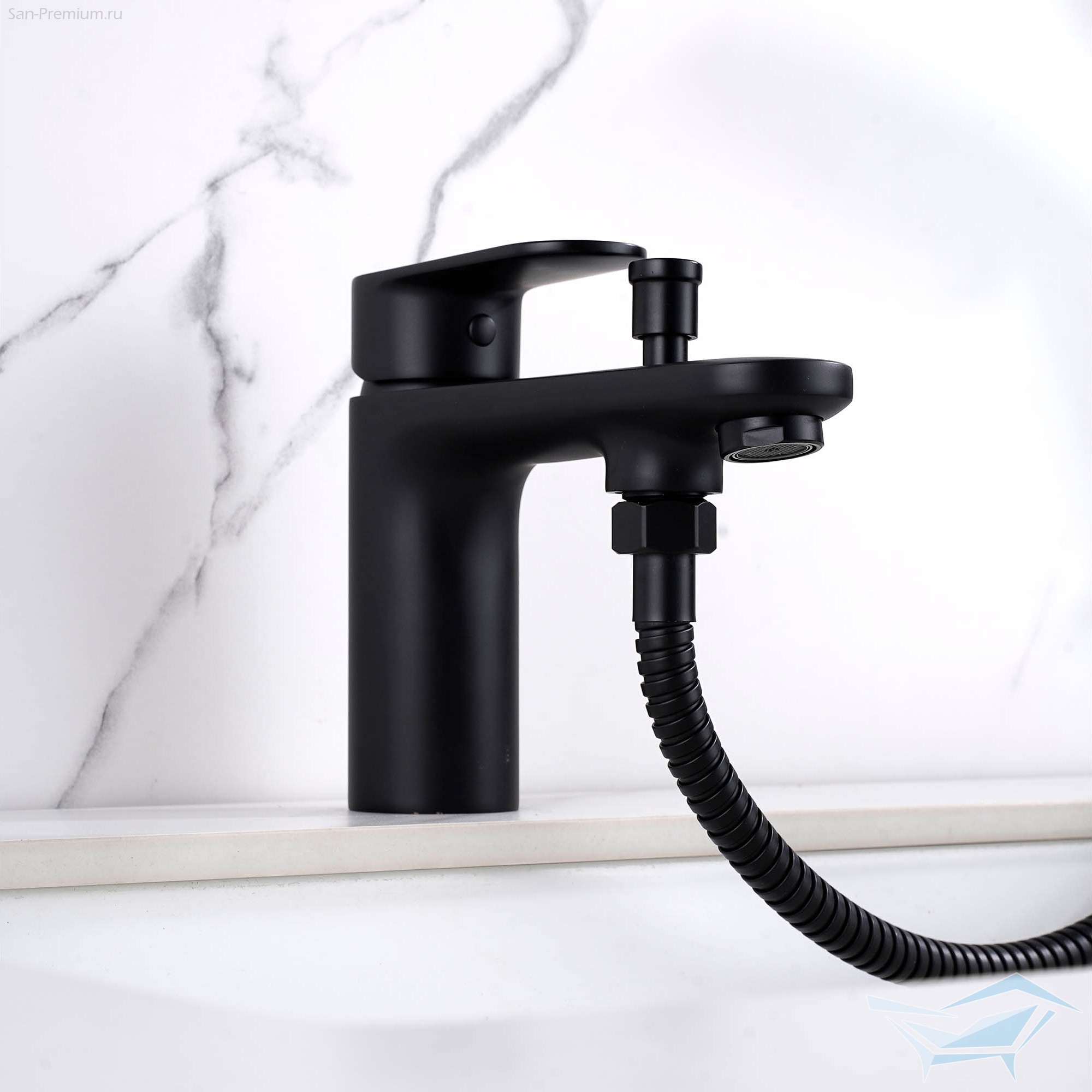 - дивертор: встроенный, автоматически переключает поток с душа на излив при закрытии воды; ручной душ включается опусканием вниз кольца у основания шланга в месте соединения с изливом