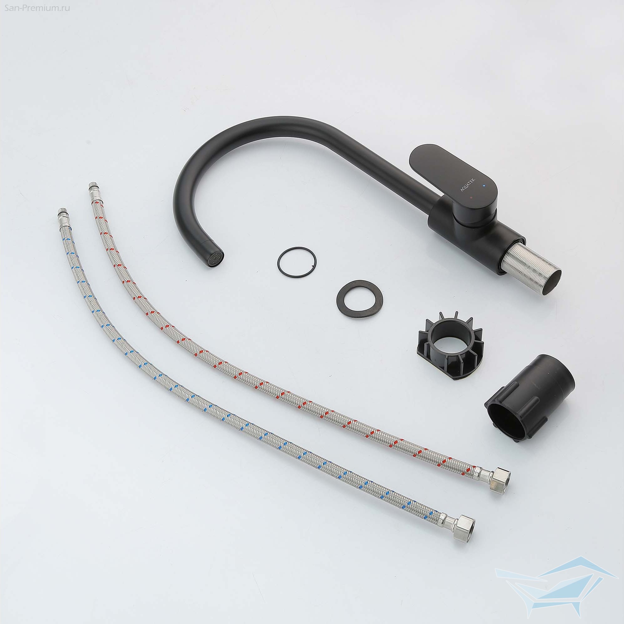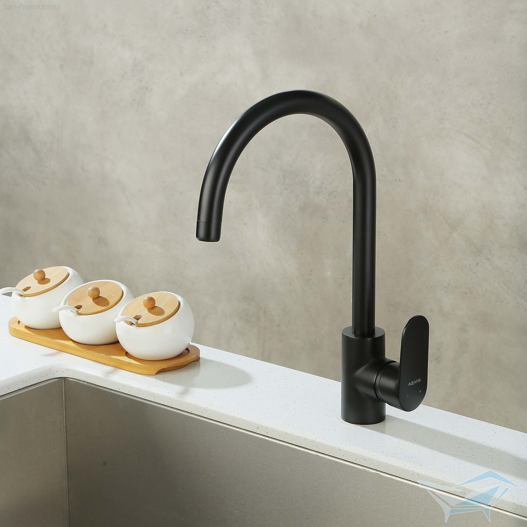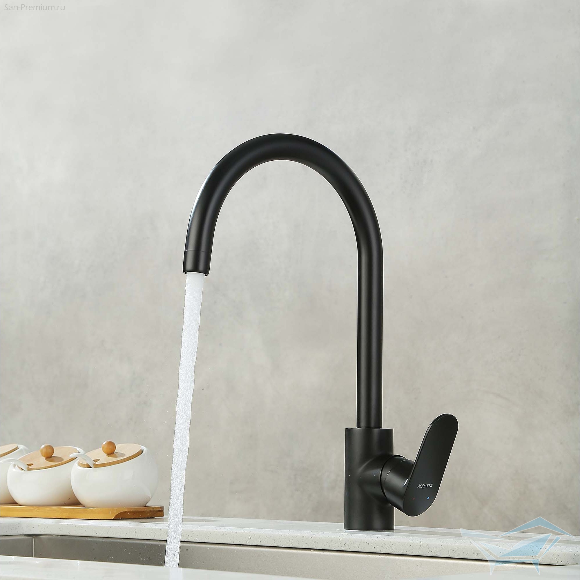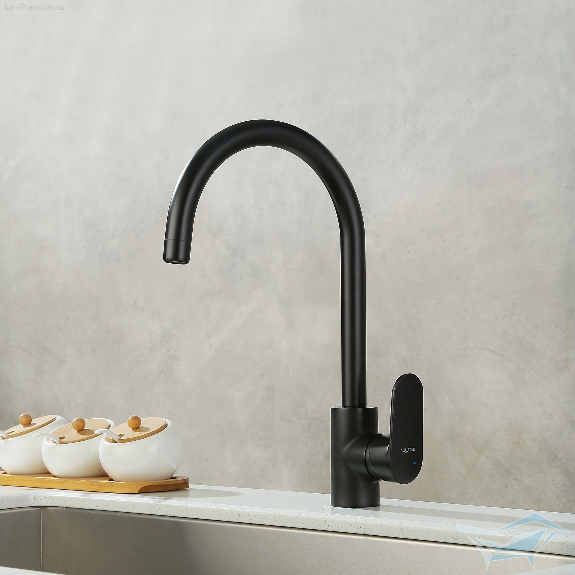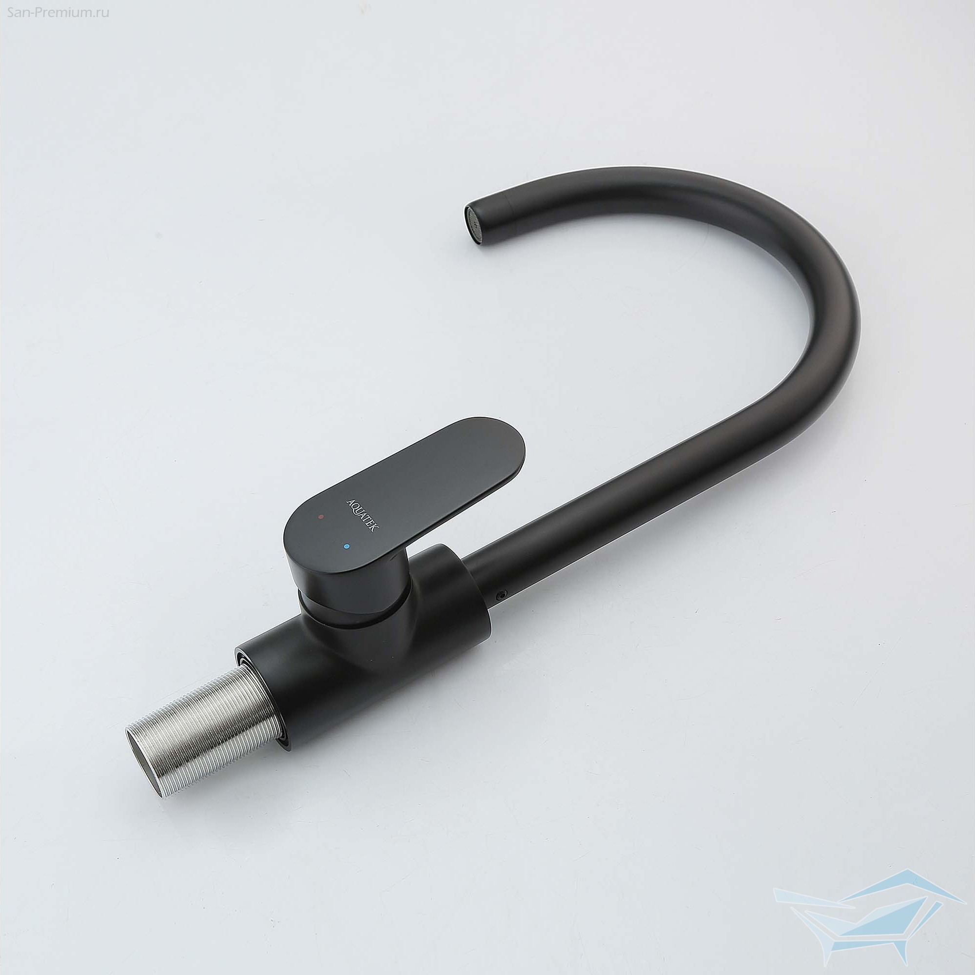 Смеситель для кухни Aquatek Ника полукруглый излив, матовый чёрный / AQ1882MB