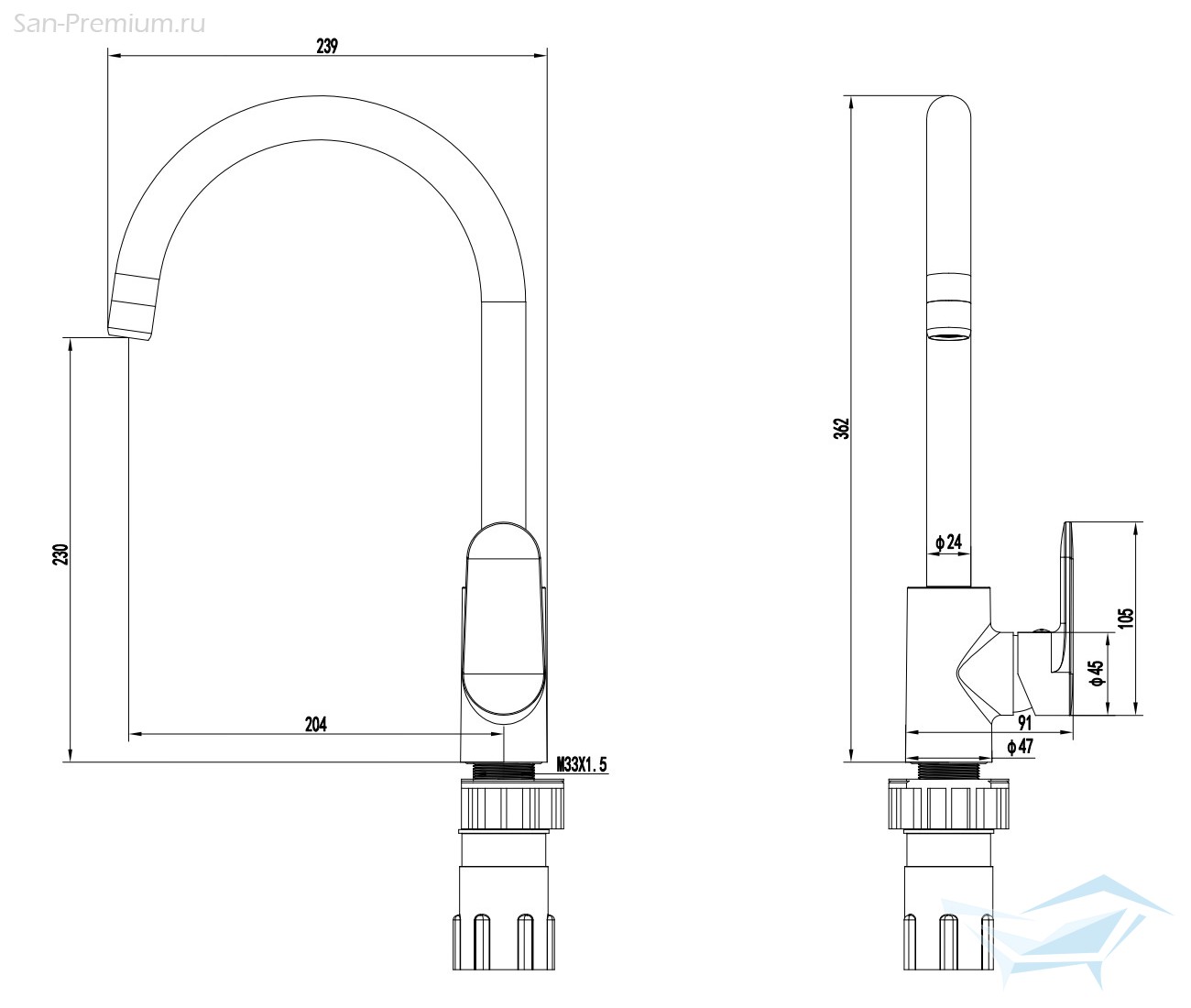 • оснащен высоким поворотным изливом, удобен для мытья крупных предметов