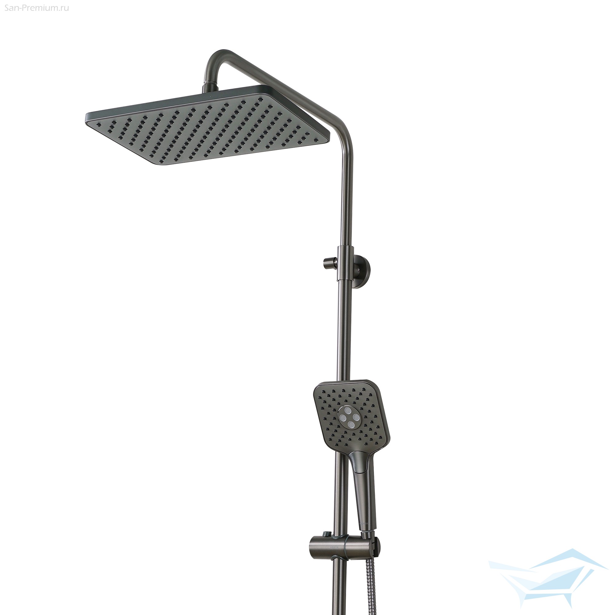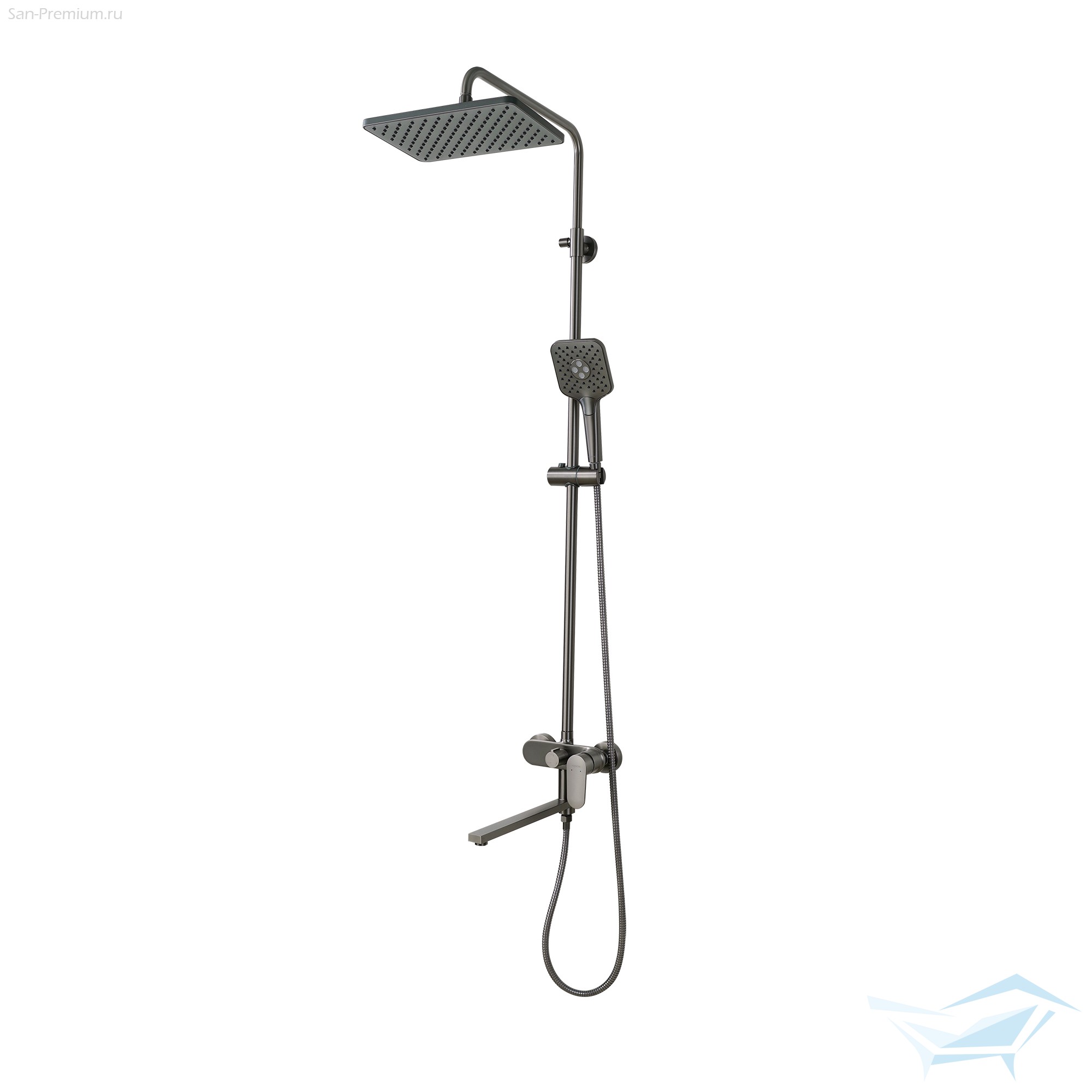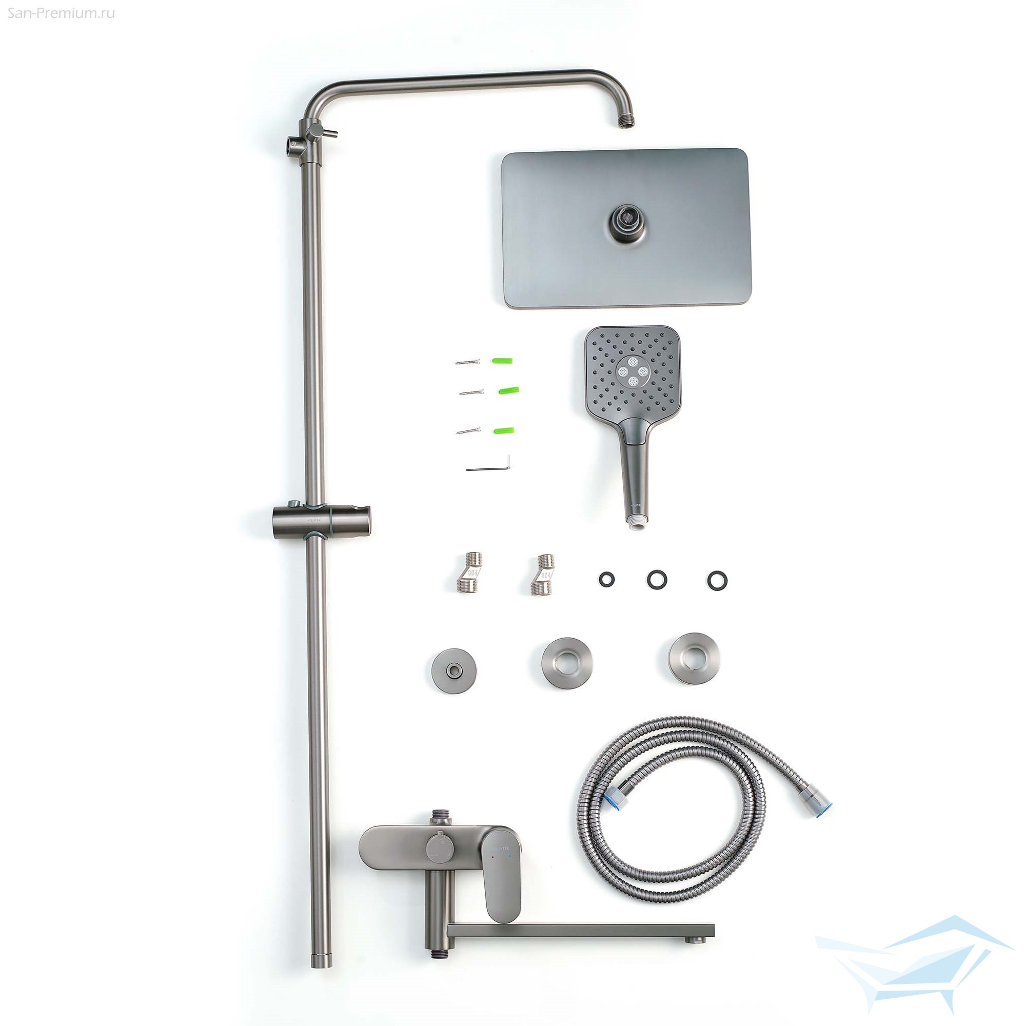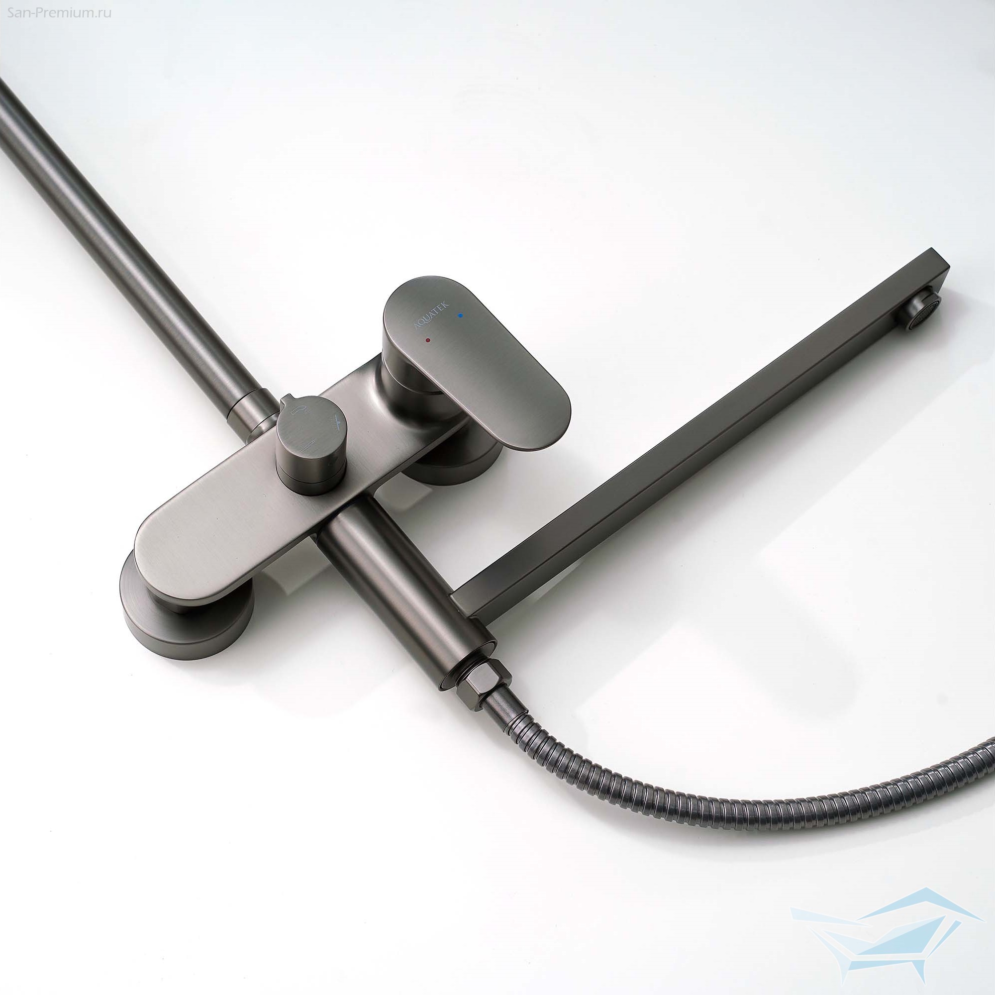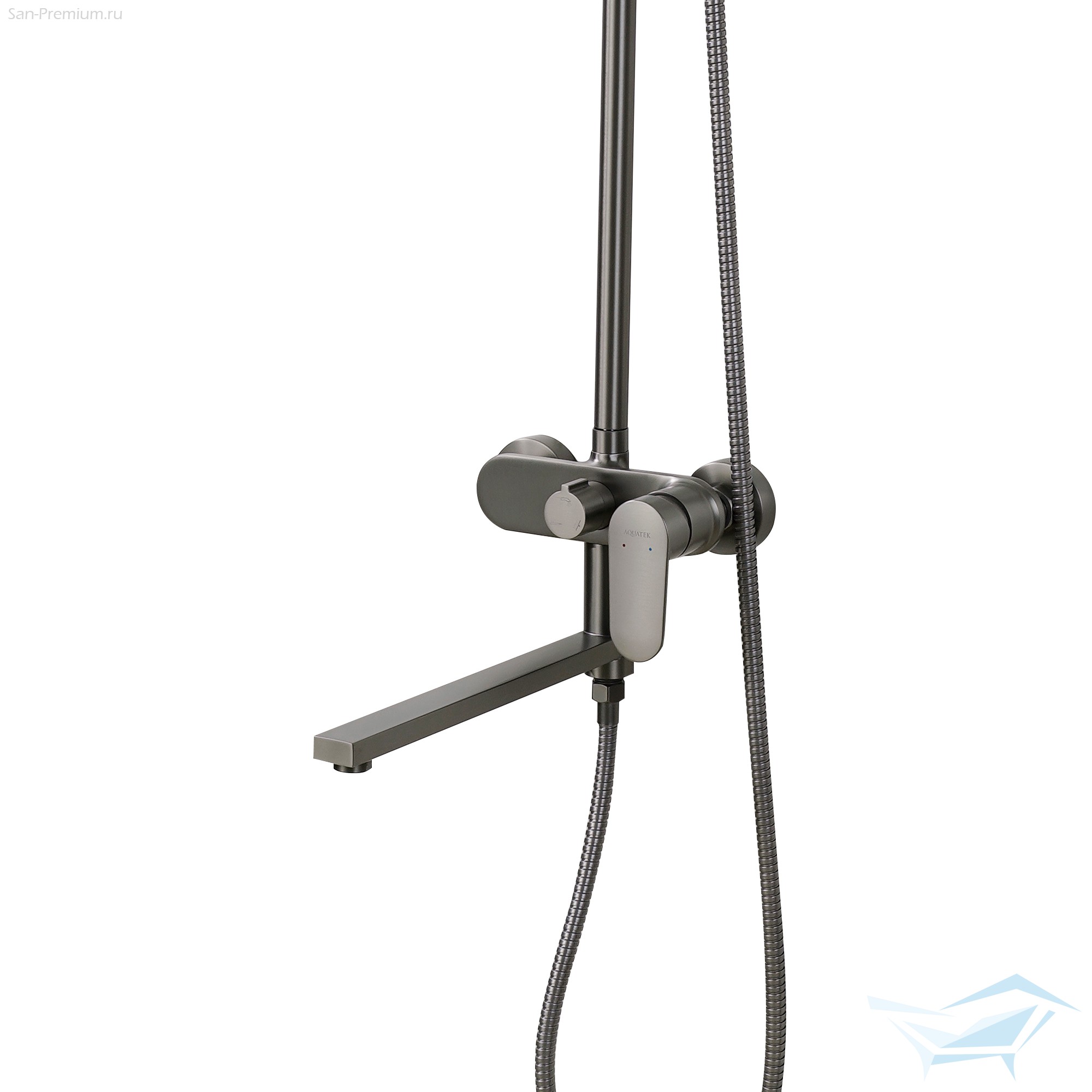 Душевая система Aquatek Ника, смеситель с длинным изливом, верхний душ 300x193мм, лейка 3jet, оружейная сталь / AQ2840BGM