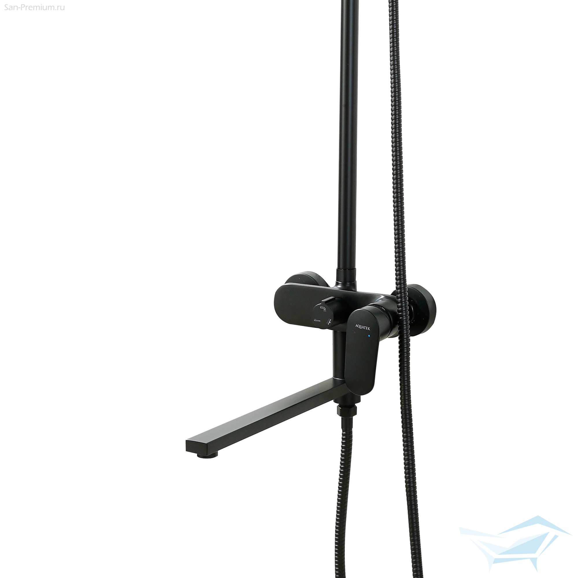 Душевая система Aquatek Ника, смеситель с длинным изливом, верхний душ 300x193мм, лейка 3jet, матовый чёрный