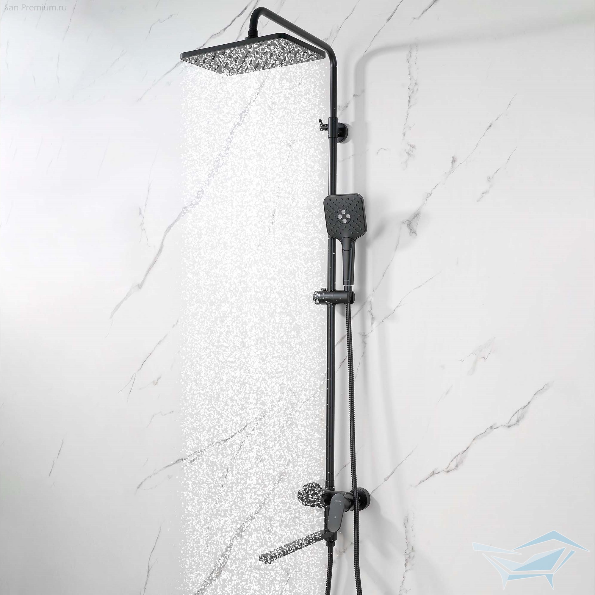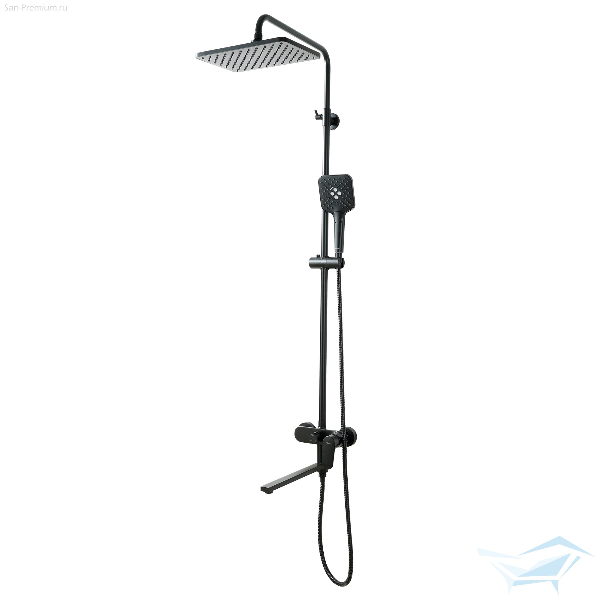 Душевая система Aquatek Ника, смеситель с длинным изливом, верхний душ 300x193мм, лейка 3jet, матовый чёрный / AQ2840MB