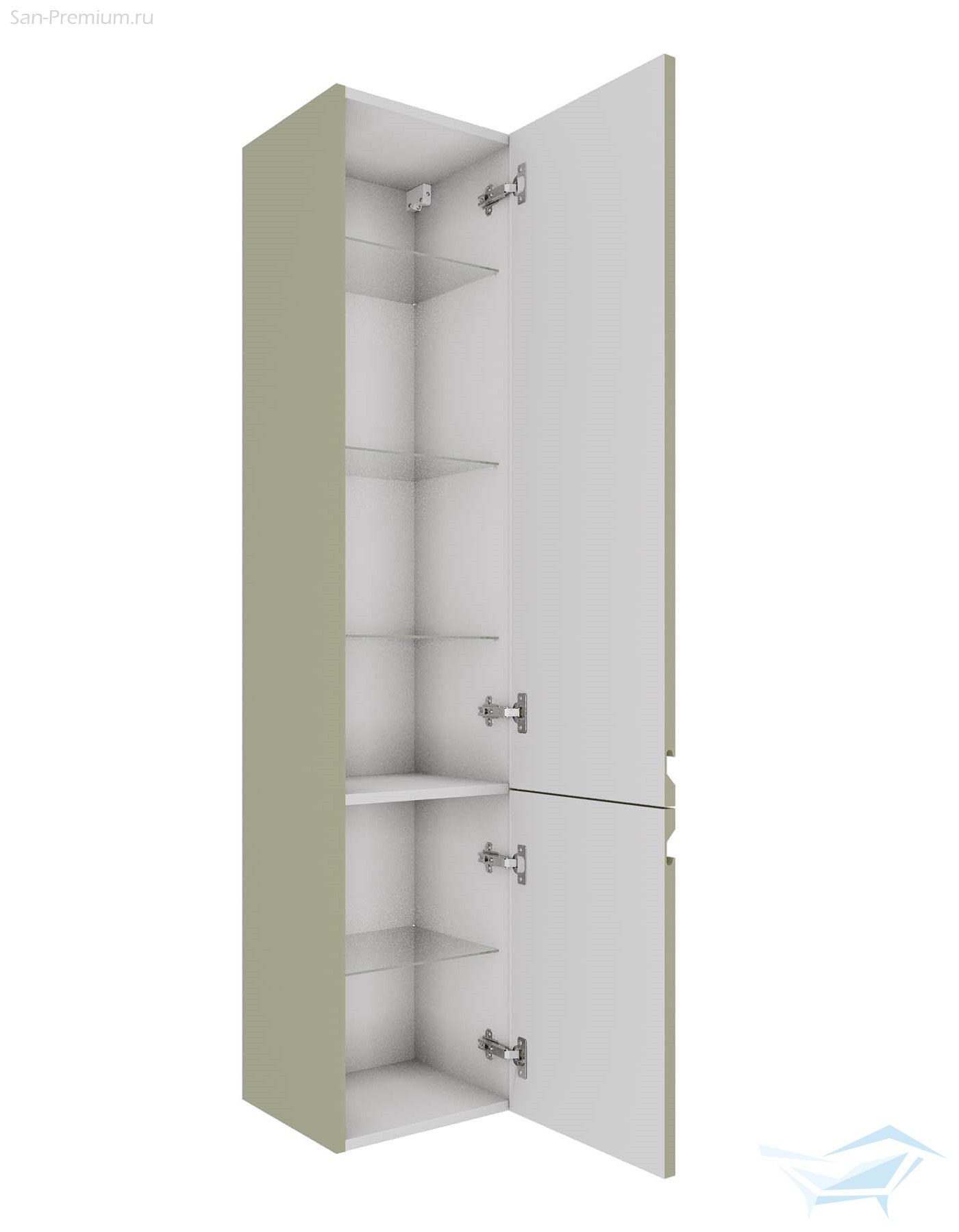 Пенал Aquatek Вега 1600x350, 2 двери, петли справа, шалфей зелёный