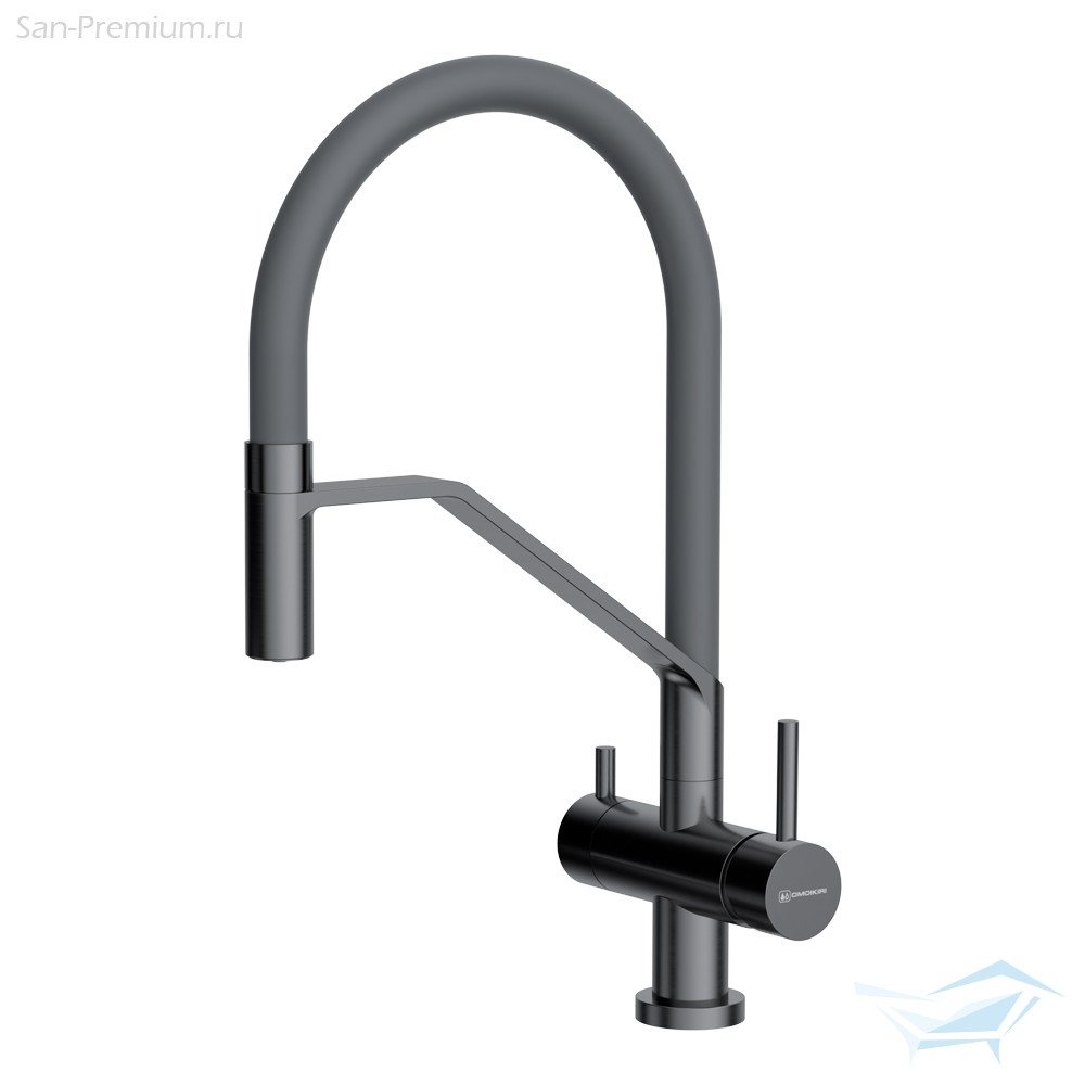Смеситель для кухни Omoikiri Akeno GM, подключение питьевой воды, воронёная сталь, серый 4994545