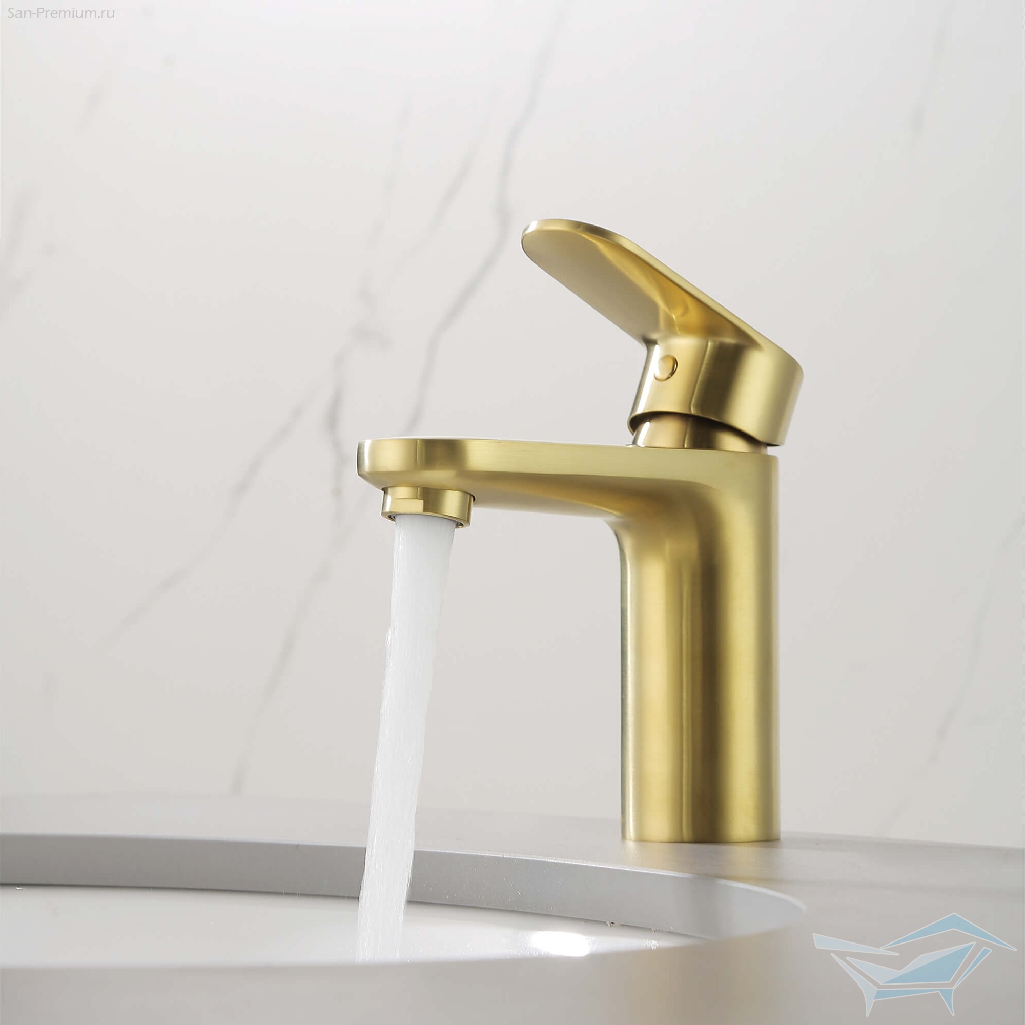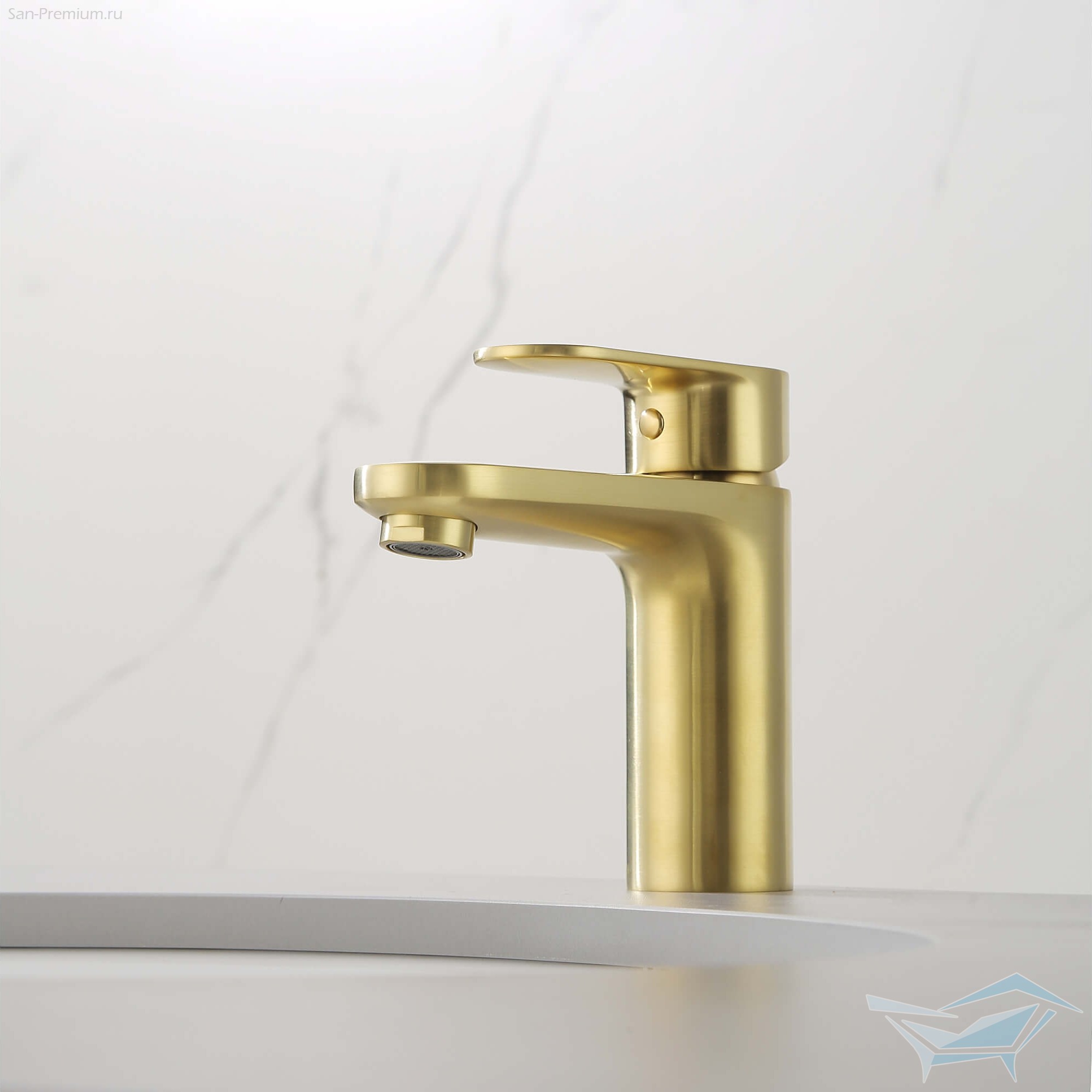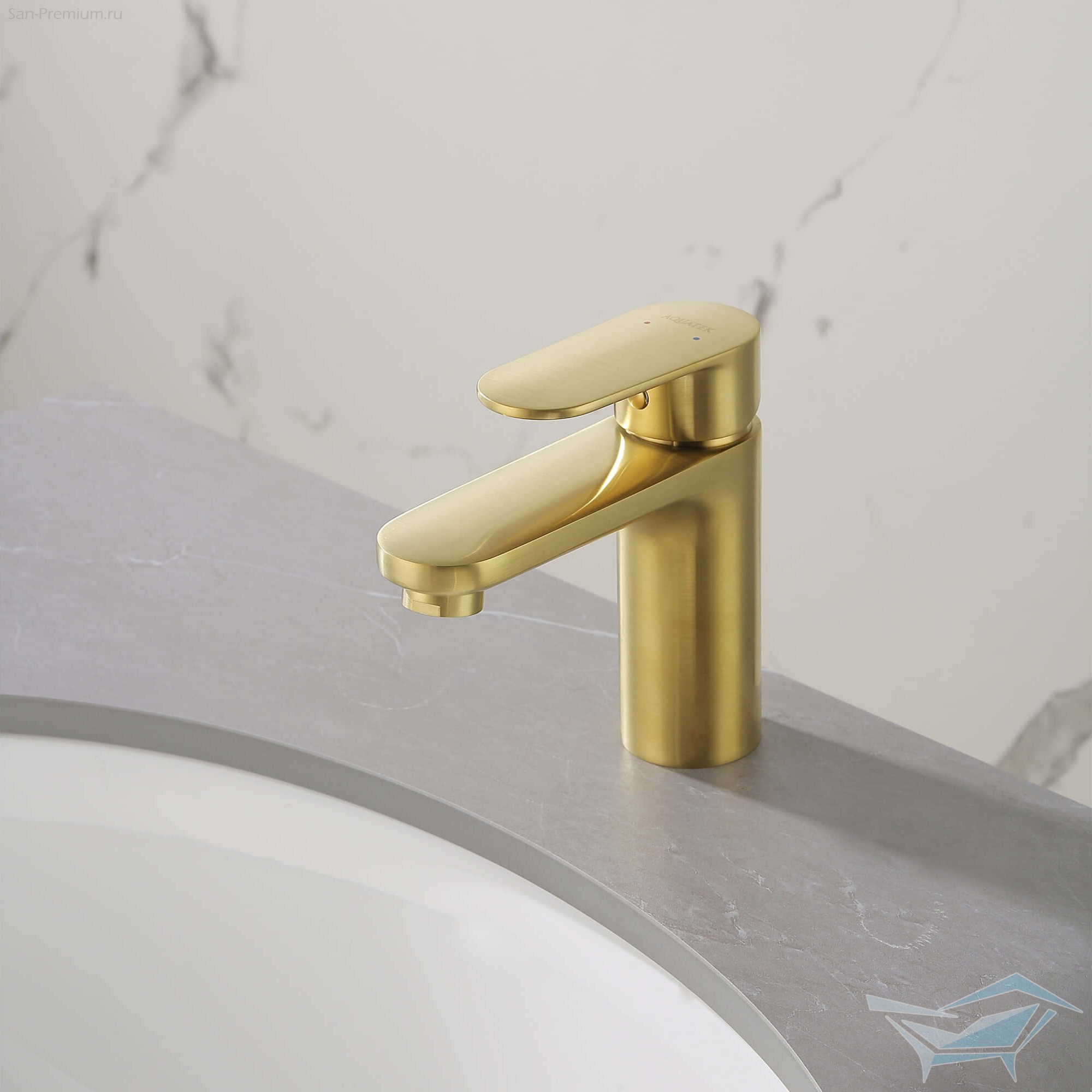 Смеситель для раковины Aquatek Ника, без донного клапана, золото шлифованное / AQ1810BG