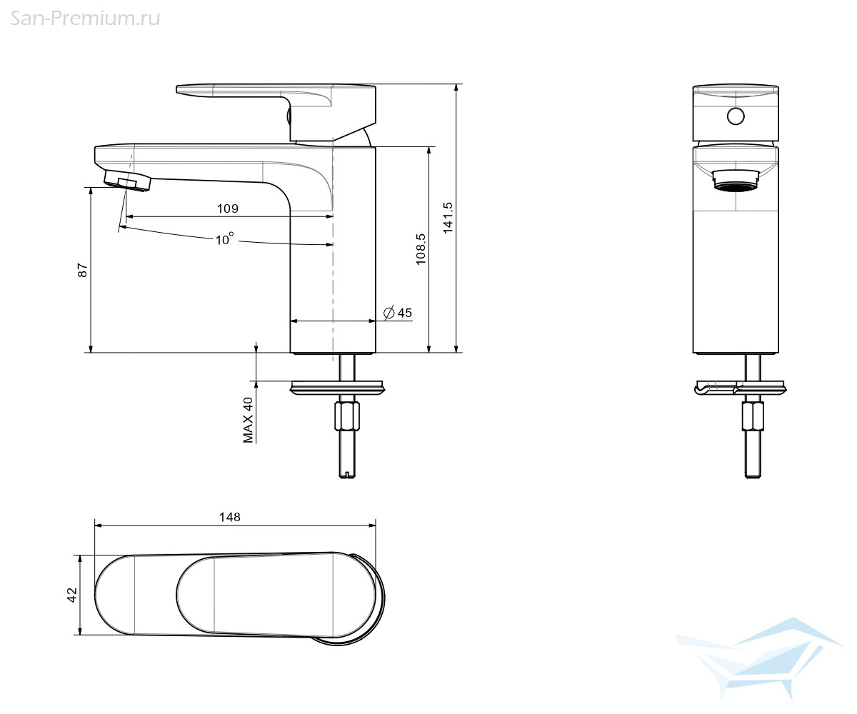 - Длина излива: 109 мм