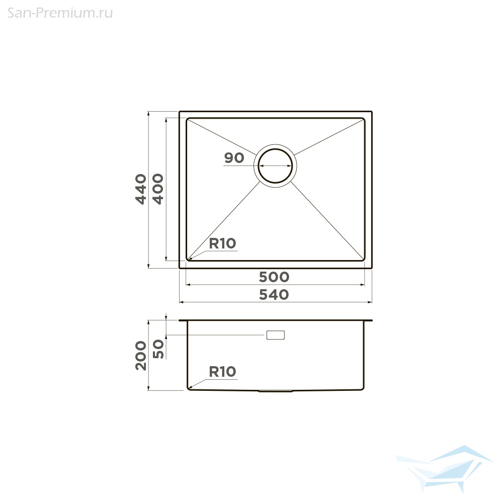 - Размер мойки (ДхШ): 540x440 мм