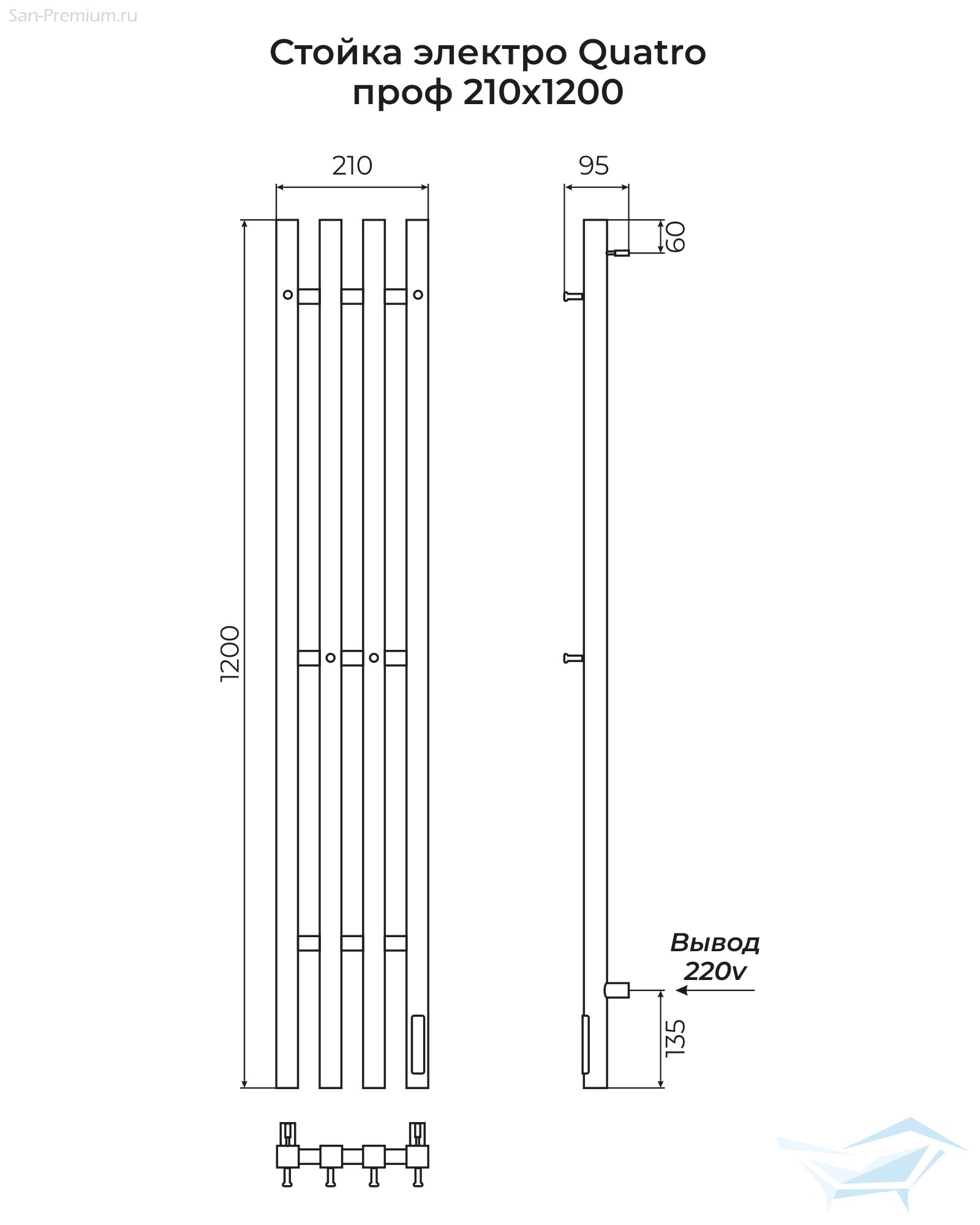 Полотенцесушитель электрический Terminus Quatro Проф 1200, стойка, 4 крючка, чёрный матовый / 4670078561763
