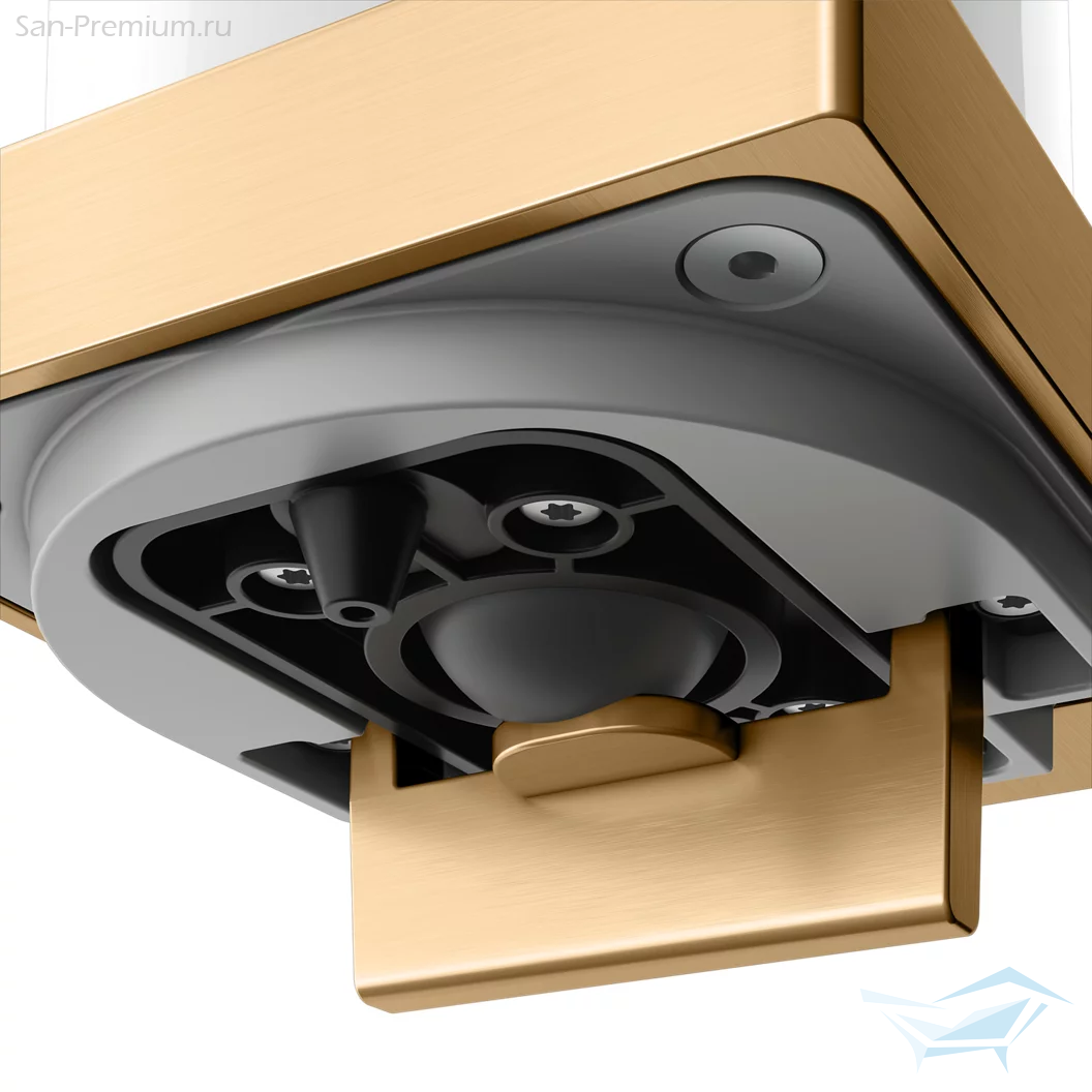 Строгие линии и бесшовная поверхность в цвете ""латунь шлифованная"" делают модель идеальным выбором для ванных в стиле модерн, хай-тек или минимализм.