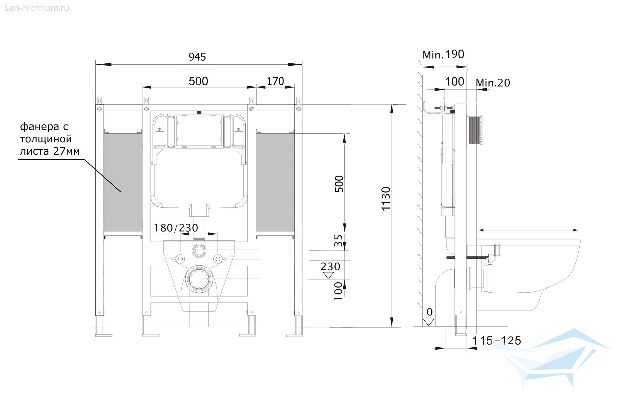 - Комплектация: звукоизоляция, рама, сливной бачок