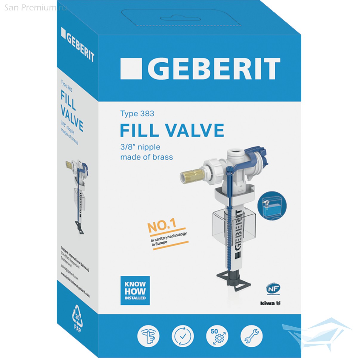 Клапан впускной Geberit Impuls Тип 383 для бачка унитаза, инсталляции боковой