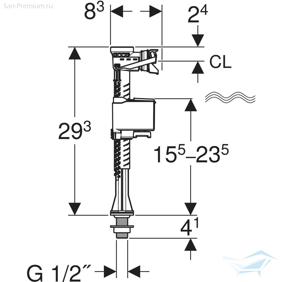 Впускной клапан бачка Geberit тип 343, подвод воды снизу, 1/2", ниппель из пластика 136.752.00.1