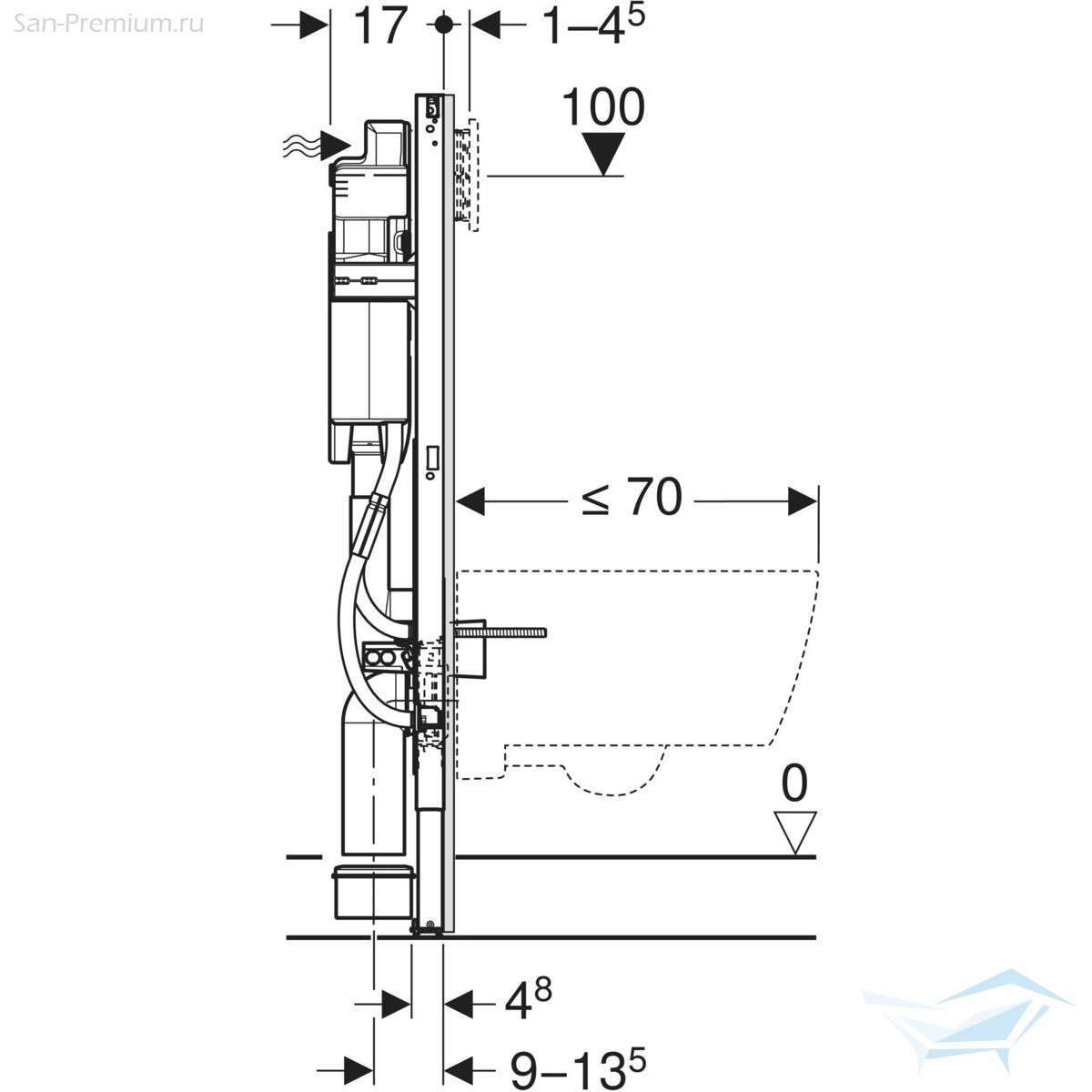 - Не подходит для противопожарного комплекта для монтажного элемента для подвесного унитаза Geberit Duofix или противопожарных заслонок для колена смыва и соединительного колена