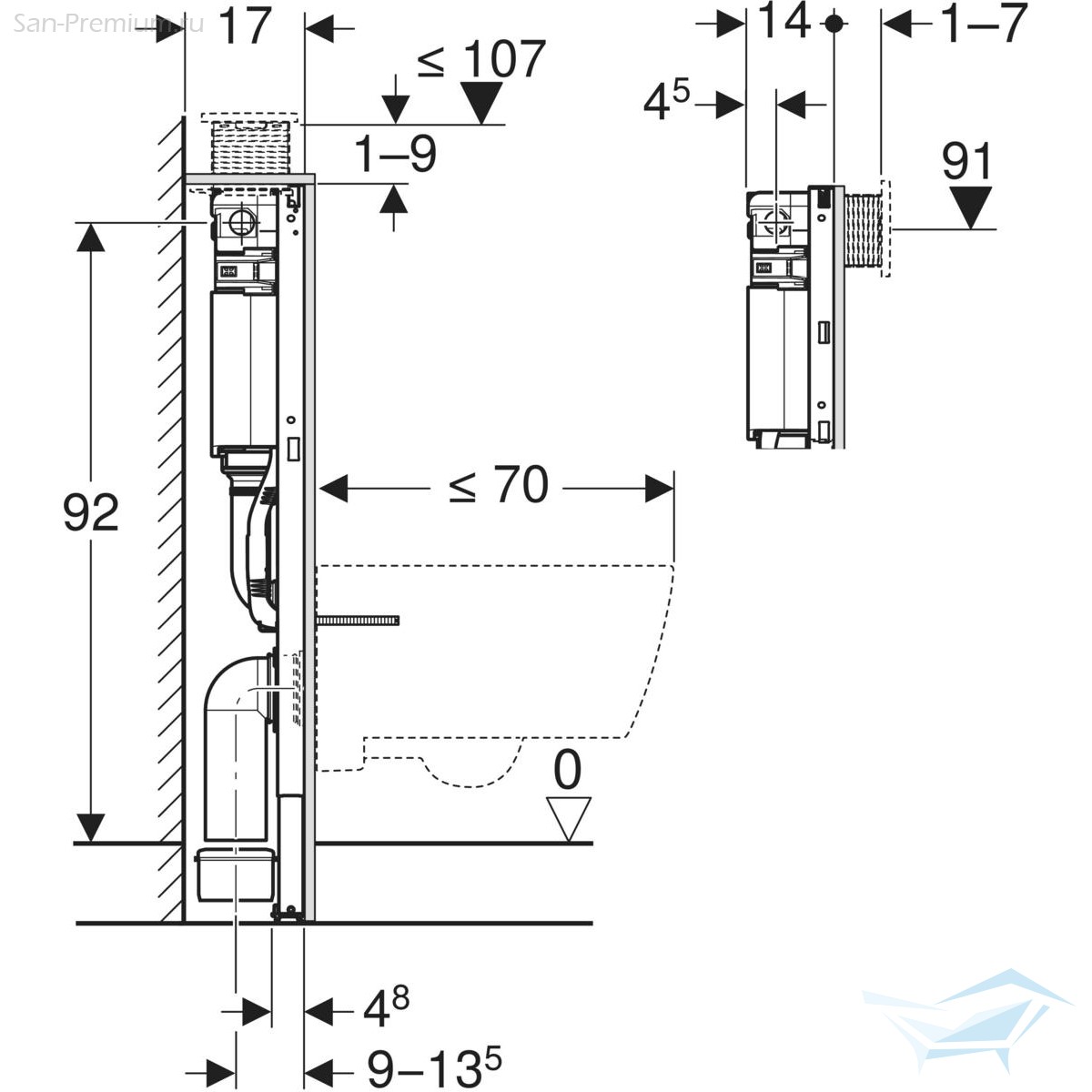 - Рама для подвесных унитазов с присоединительными размерами по EN 33 и вылетом до 70 см