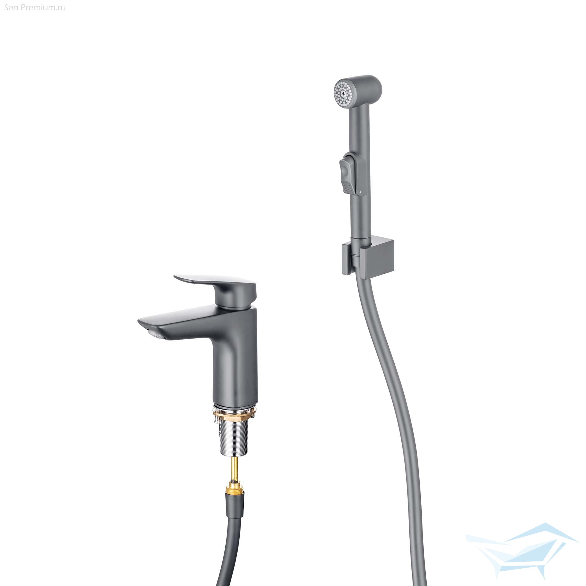 Смеситель для раковины Aquatek Вега 97, с гигиеническим ручным душем, оружейная сталь / AQ1012BGM