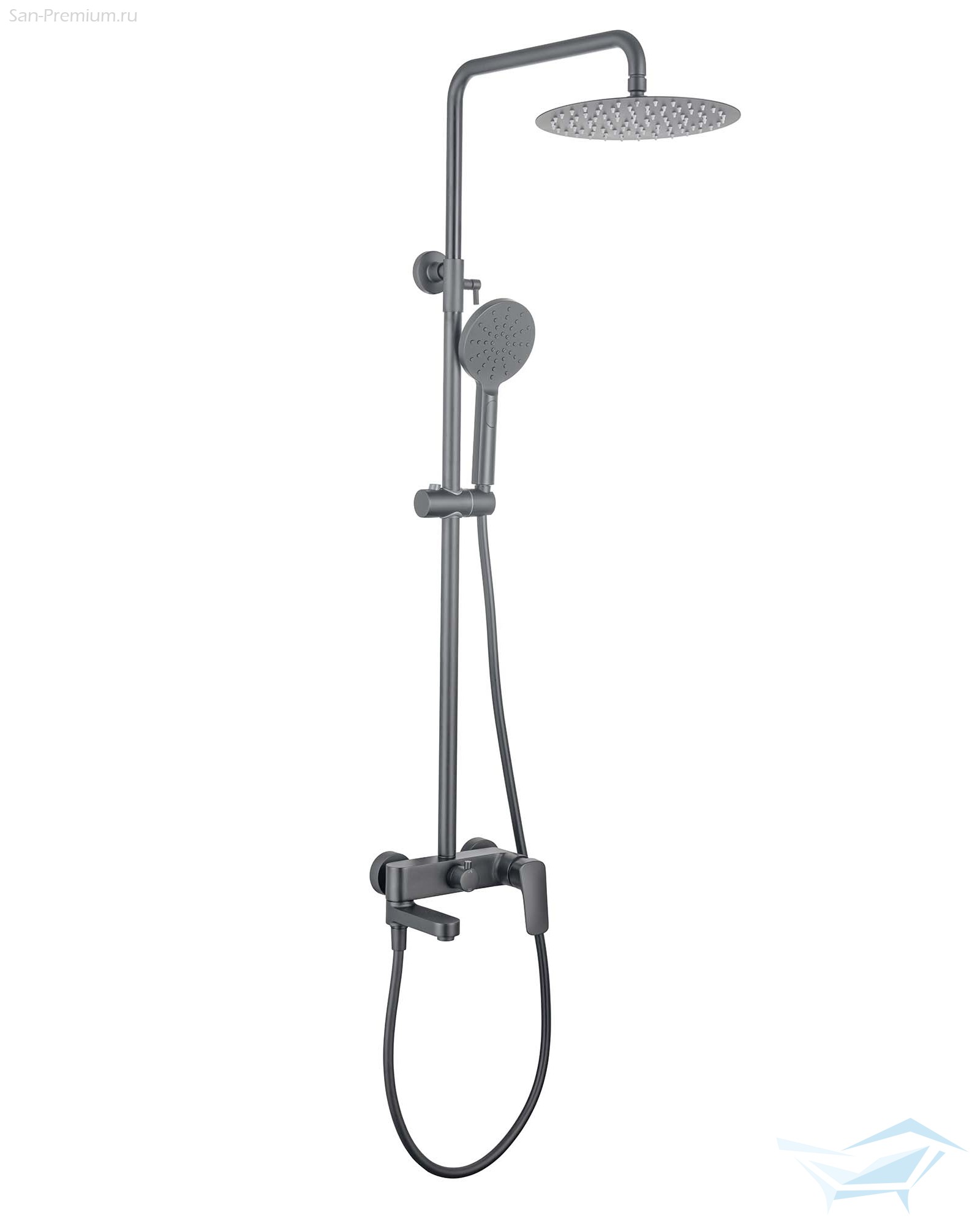 Душевая система Aquatek Вега, с изливом, 250мм, оружейная сталь / AQ2040BGM