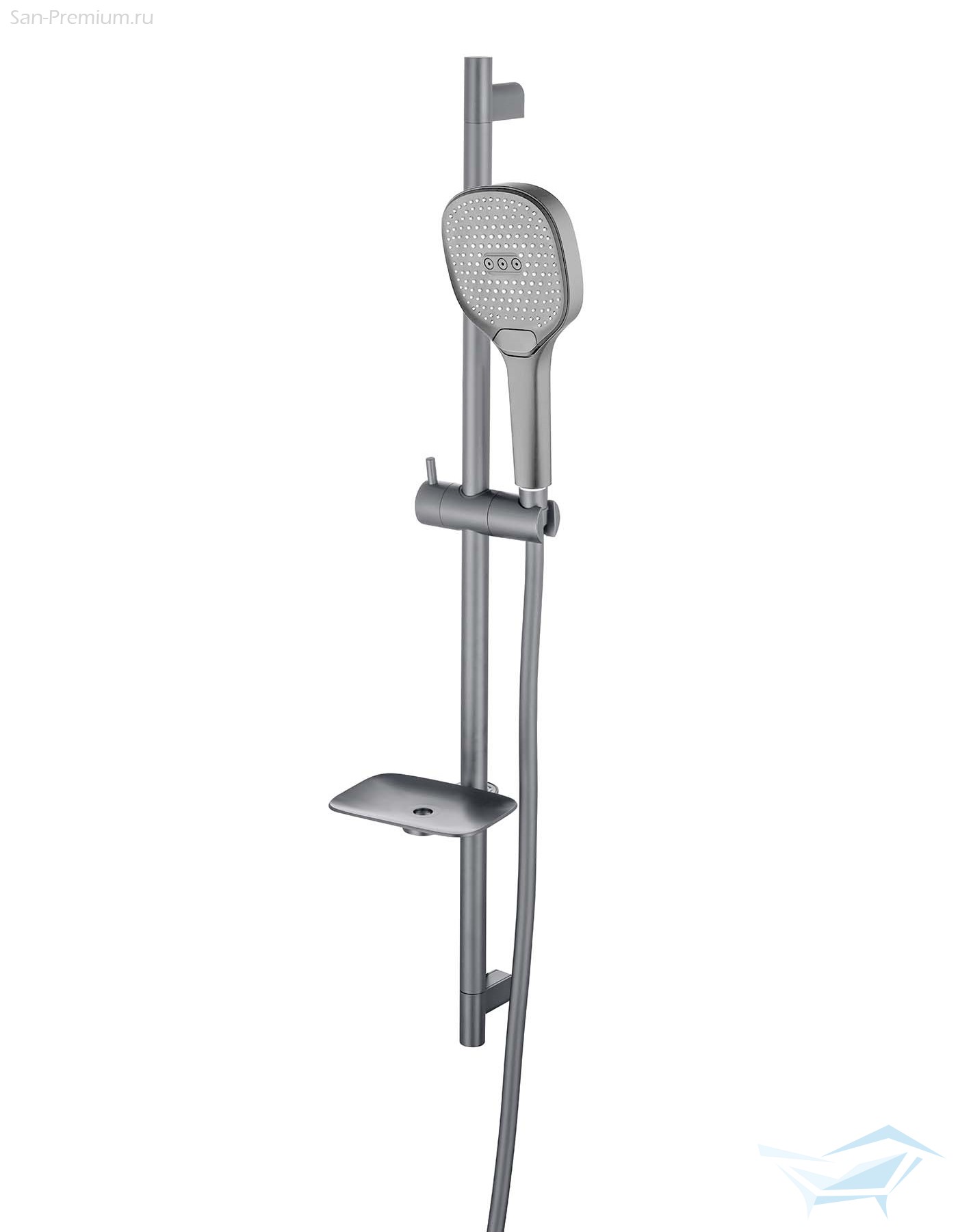 Душевой гарнитур Aquatek Вега, лейка 122мм, 3jet, штанга 800мм, оружейная сталь / AQ2021BGM