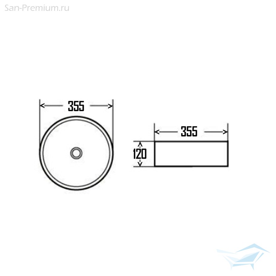 Раковина AQUAme d355x120, накладная, без перелива, белый глянцевый AQM5012