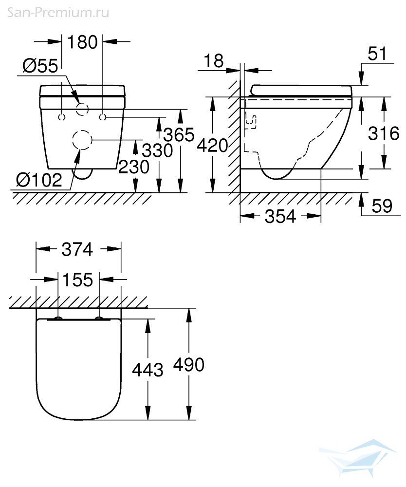 Идеально подойдет для комбинации с сиденьем Grohe Euro Ceramic с функцией SoftClose (39330001) или сиденьем GROHE Euro Ceramic (39331001)