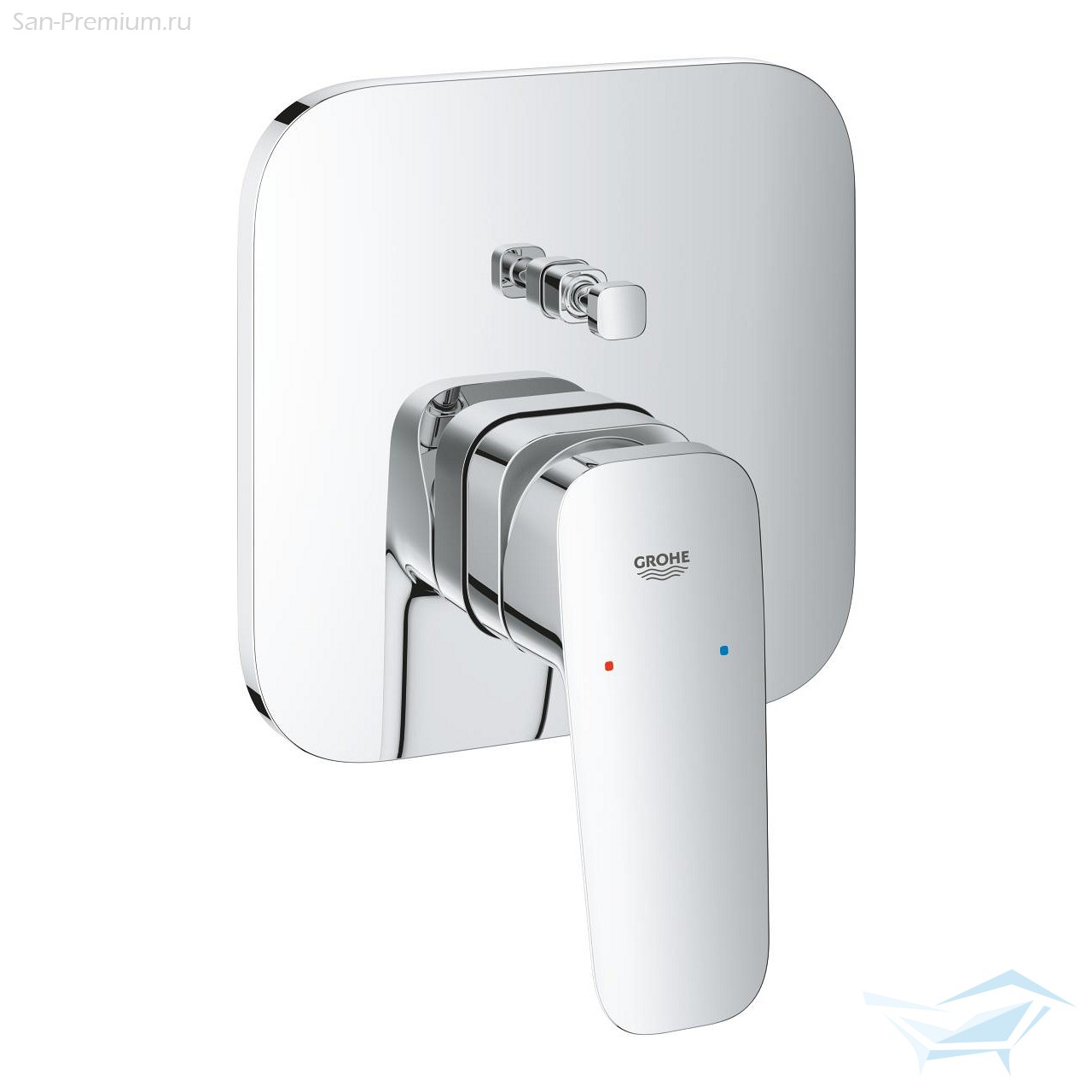 Однорычажный смеситель для ванны или душа GROHE Cubeo — скрытый монтаж, чёткий кубовидный дизайн, экономящий пространство, и надежная функциональность.