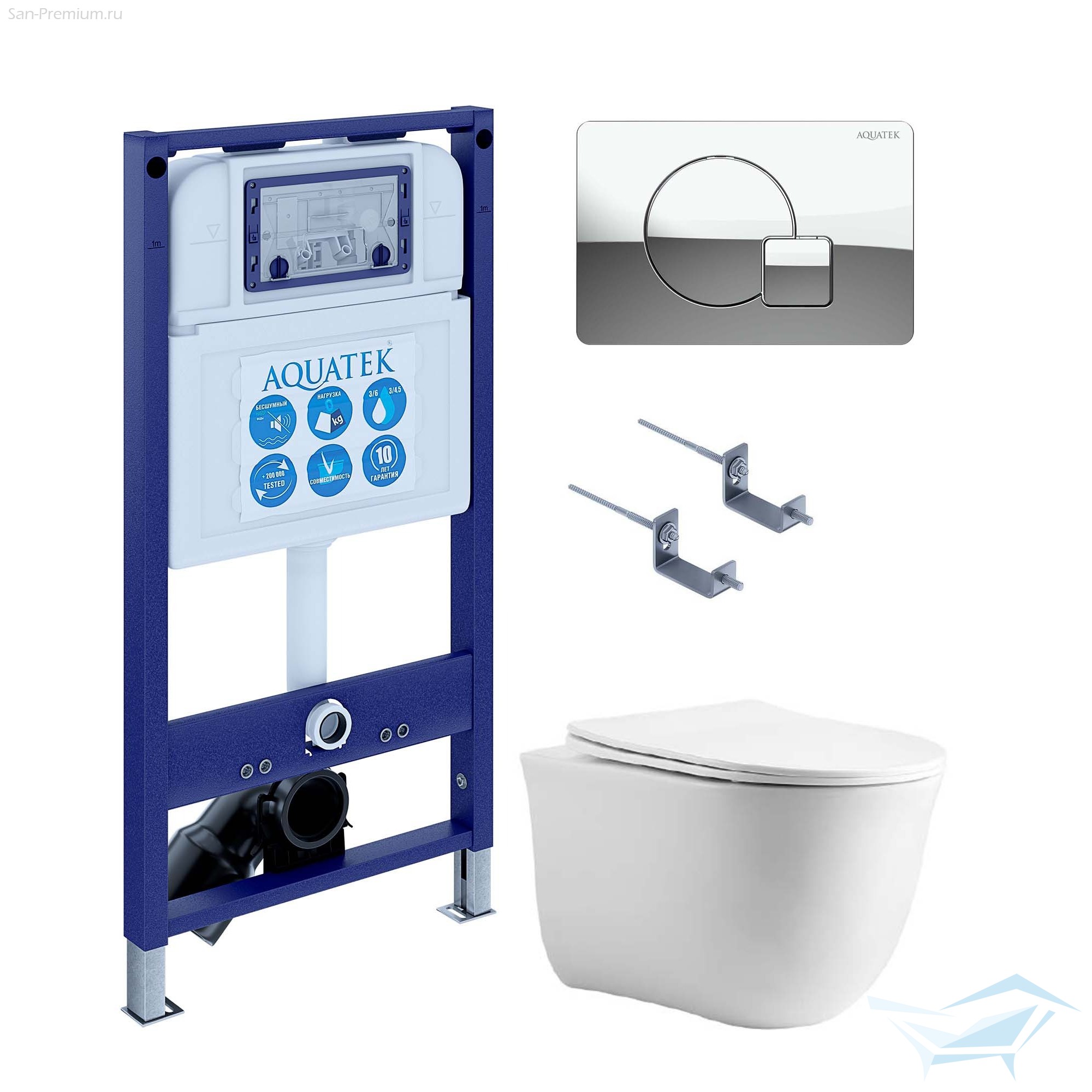 Унитаз с инсталляцией Aquatek Классик cm-067 4в1, унитаз AQ1112-00, сиденье soft close, кнопка хром