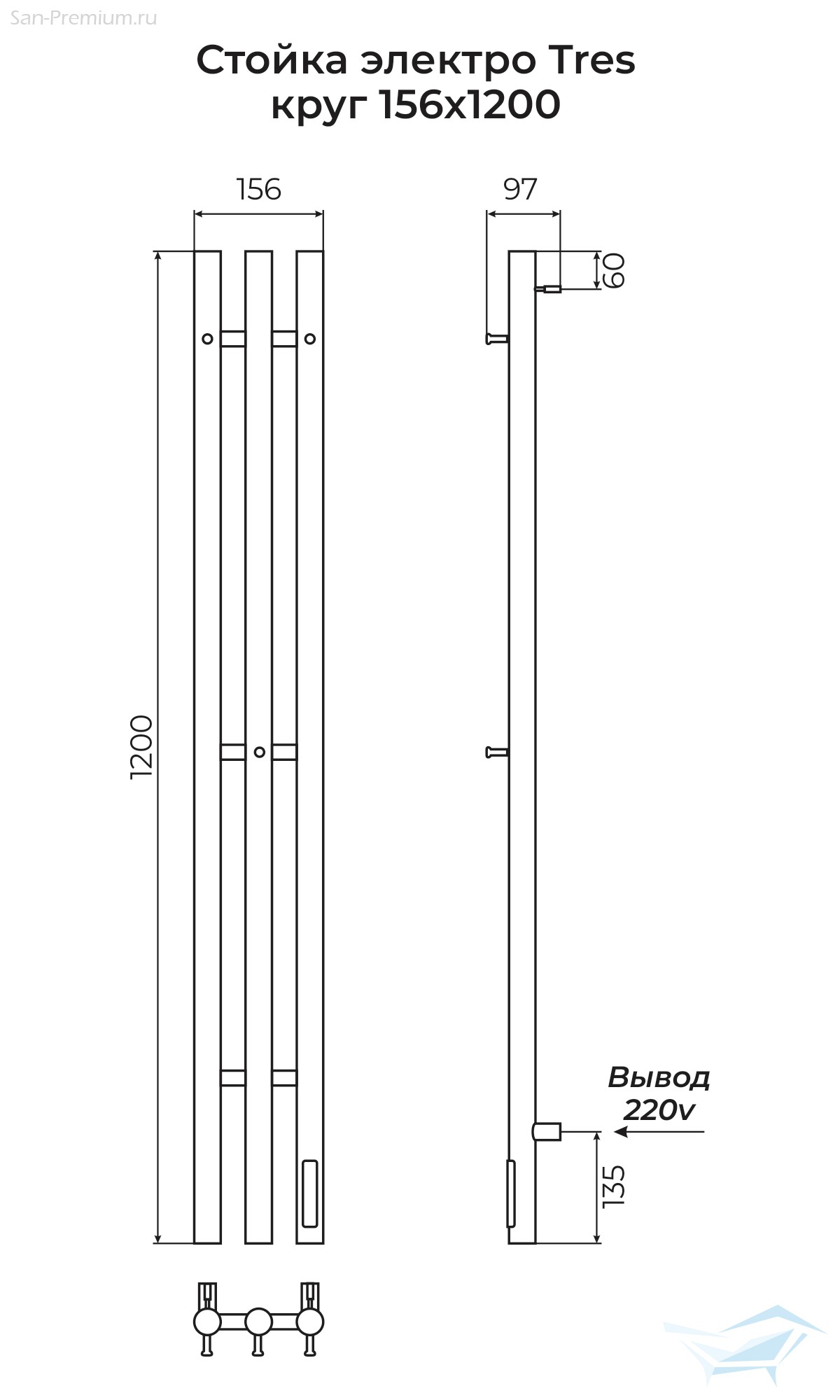 Полотенцесушитель электрический Terminus Tres Круг 1200, Оружейная сталь / 4670078566379
