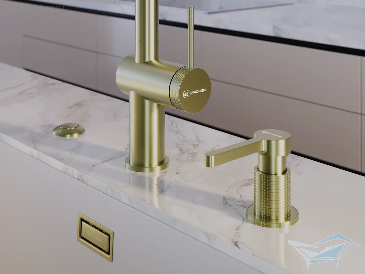 Смеситель для кухни Omoikiri Tahara-SB LG, подключение фильтра питьевой воды, вытяжной излив 2jet, светлое золото / 4994528