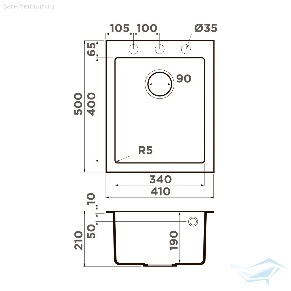 - Размер мойки (ДхШ): 410x500 мм
