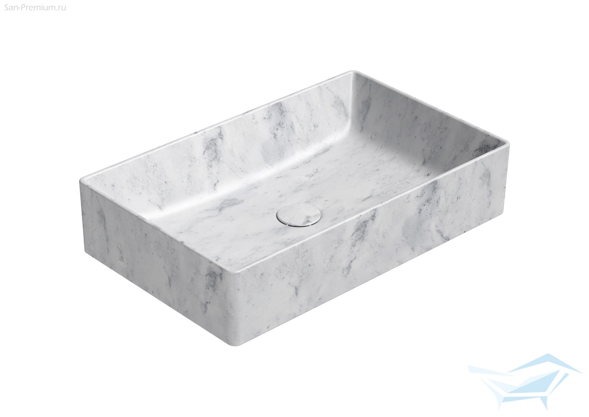 Раковина GSI AltaCeramica 600x370, накладная, прямоугольная, без перелива, без отверстия под смеситель, под мрамор Marbled white AC30835