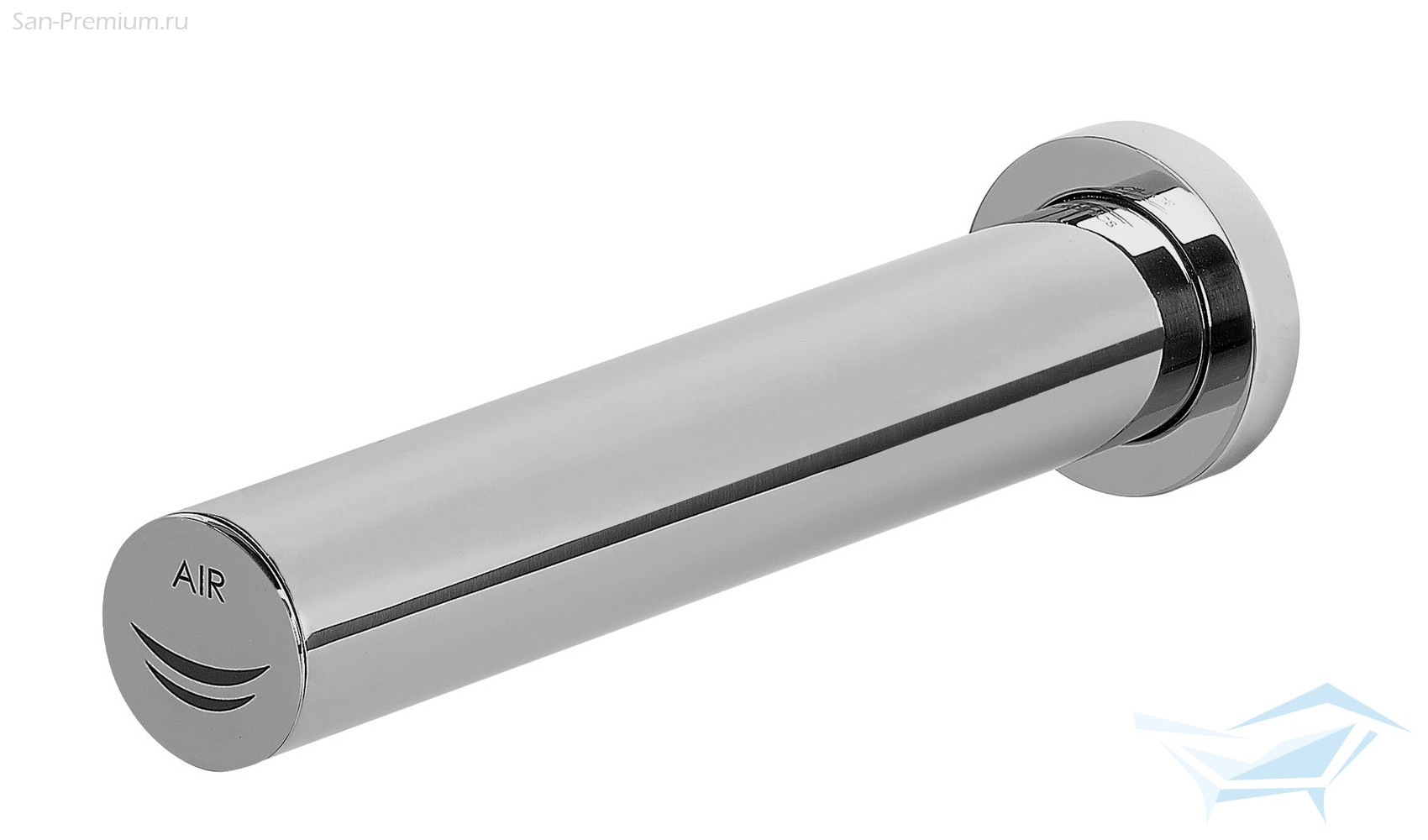 Сенсорная сушилка для рук из хромированной латуни и нержавеющей стали в глянцевом исполнении с настенным монтажом.