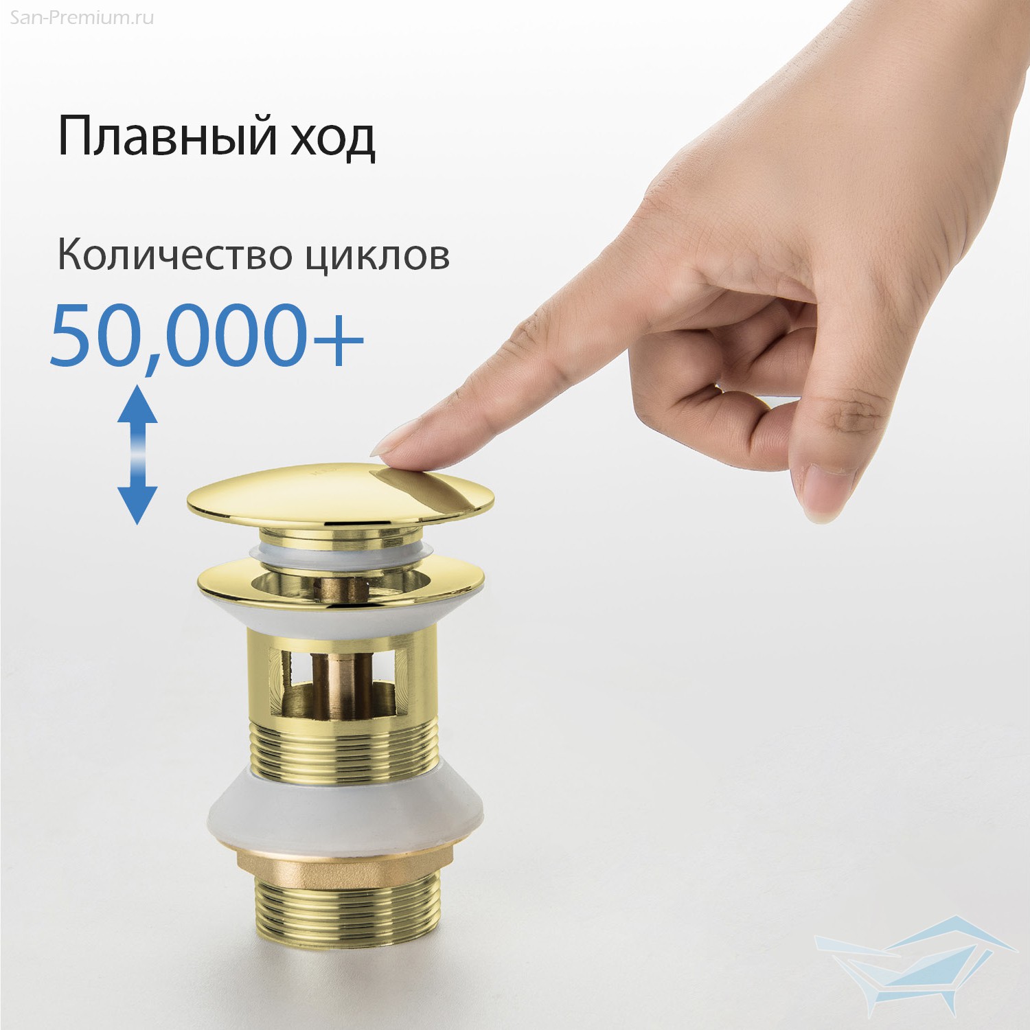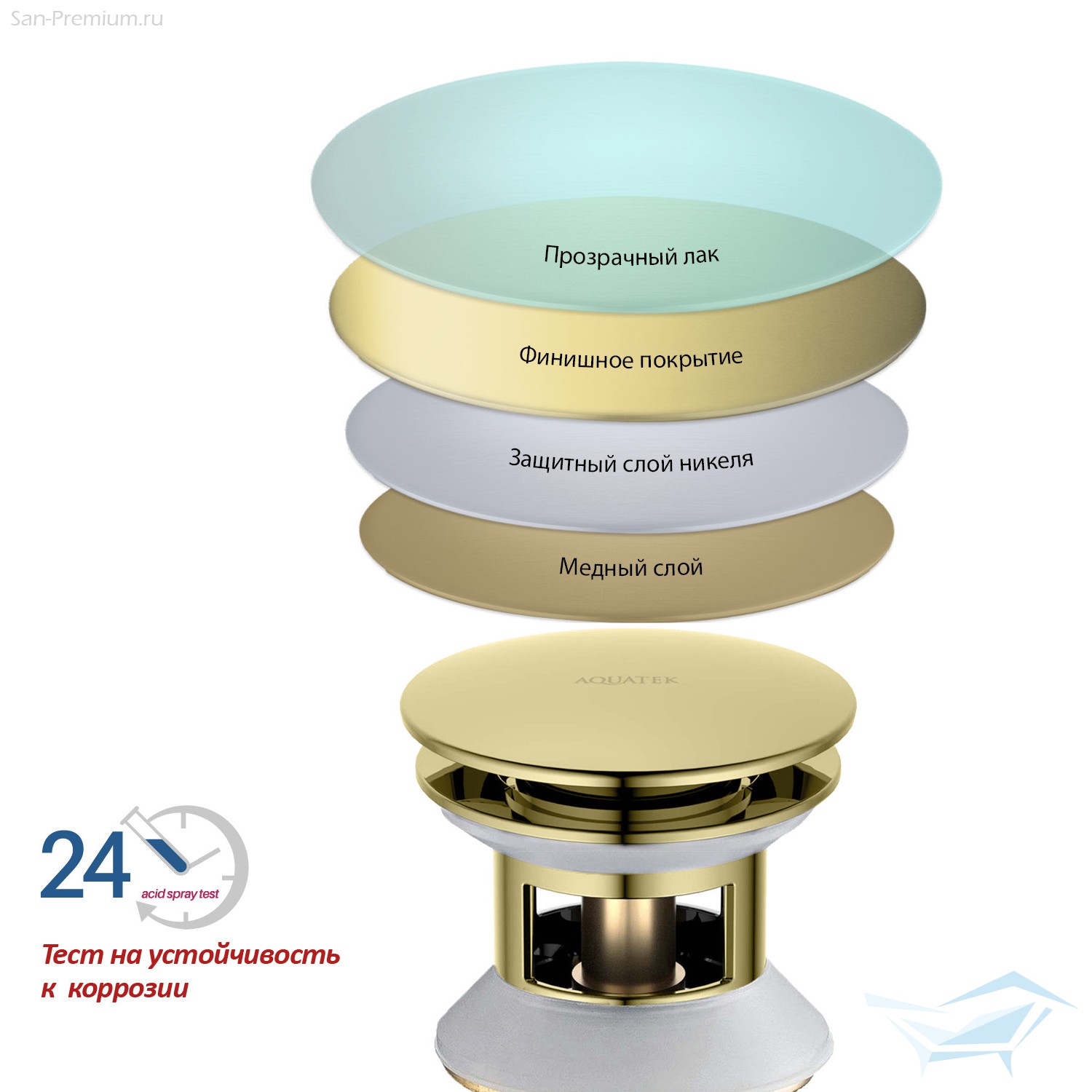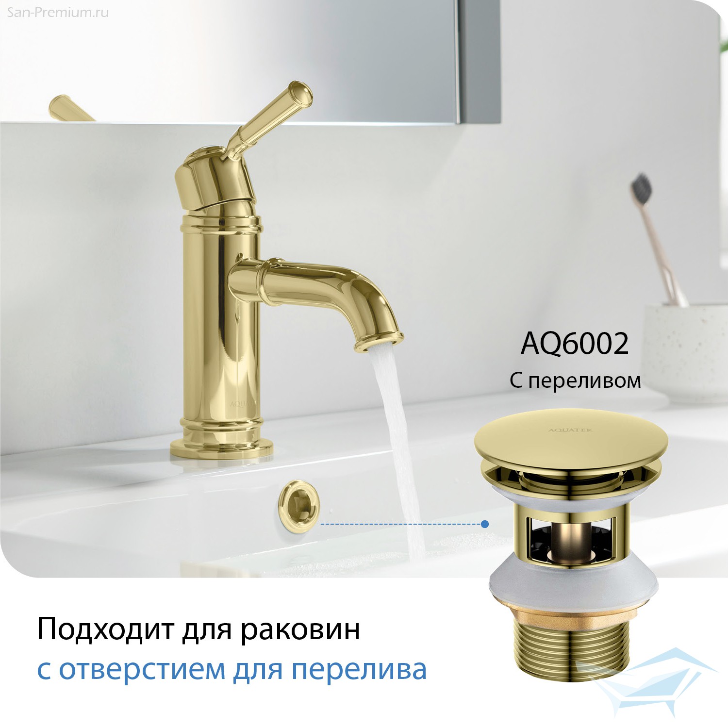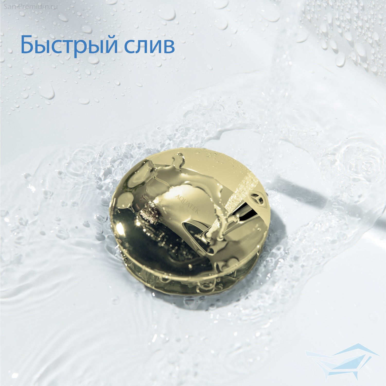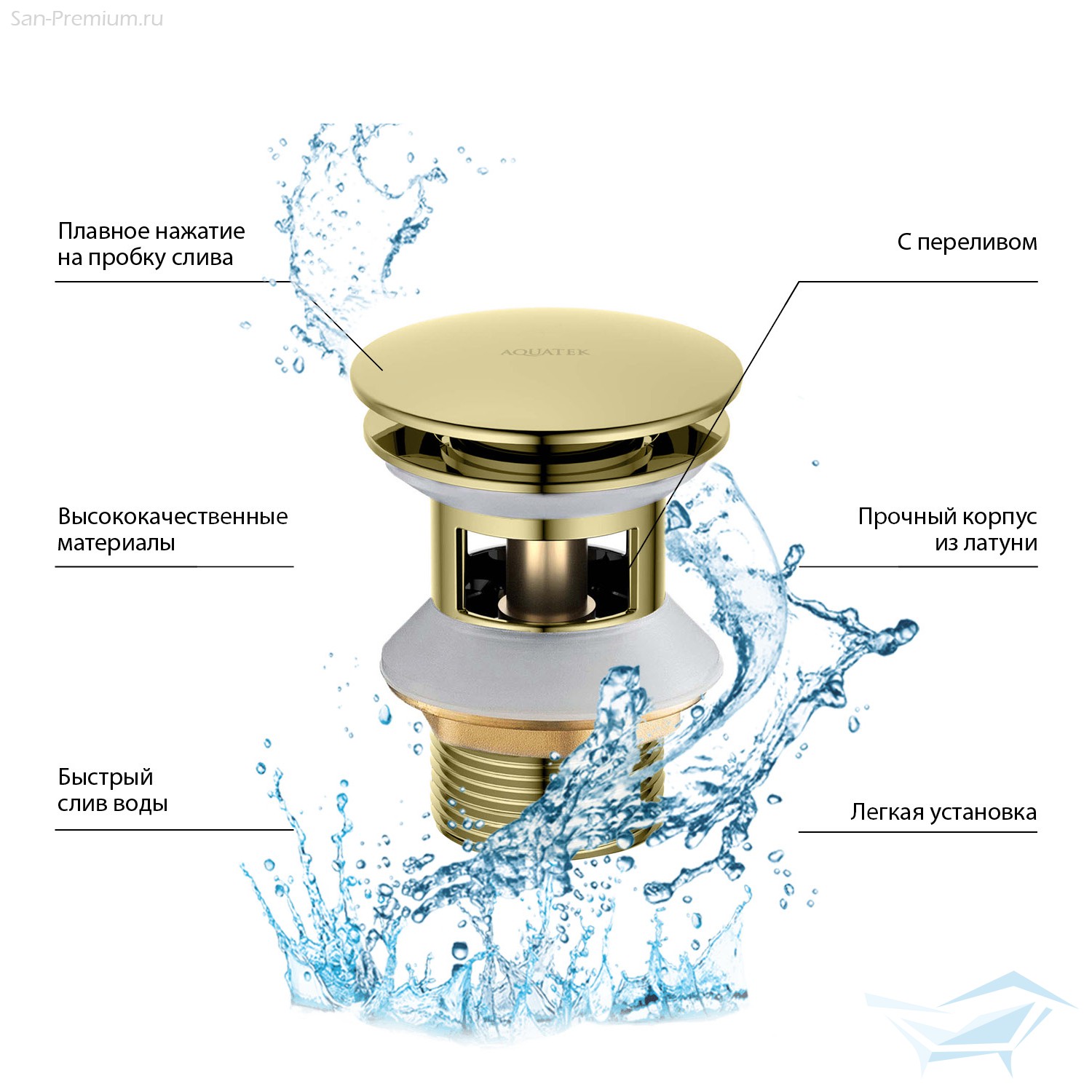Сливной набор для раковины Aquatek, Push-open круг, с переливом, полированное золото / AQ6002PG
