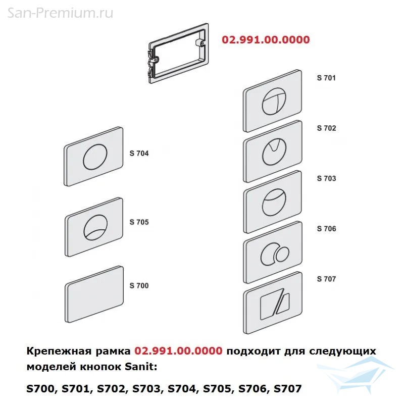 Крепежная рамка подходит для моделей бачков Sanit с малым ревизионным отверстием, для следующих моделей сливных кнопок Sanit: