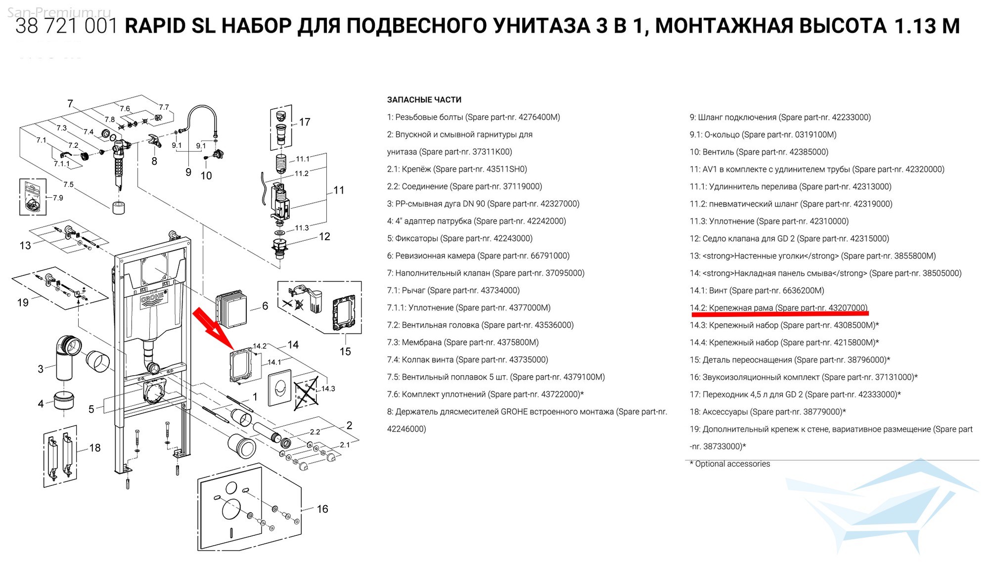 Рамка подвесная для установки и фиксации сливной кнопки на бачке инсталляций Grohe. Крепежная рамка подходит для кнопок с размерми 197x156 мм и соединенными со сливным механизмом через пневмотрубку.