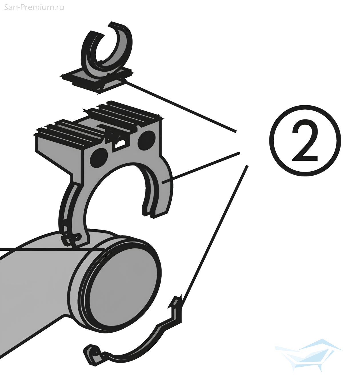 Набор зажимов для крепления патрубков для подачи и отвода к раме инсталляции Sanit и Roca.