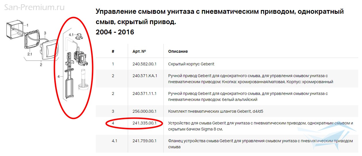- совместима с пневматическими кнопками Geberit type 01 и 10 (тип 01 и 10) произведенными с 2015 года