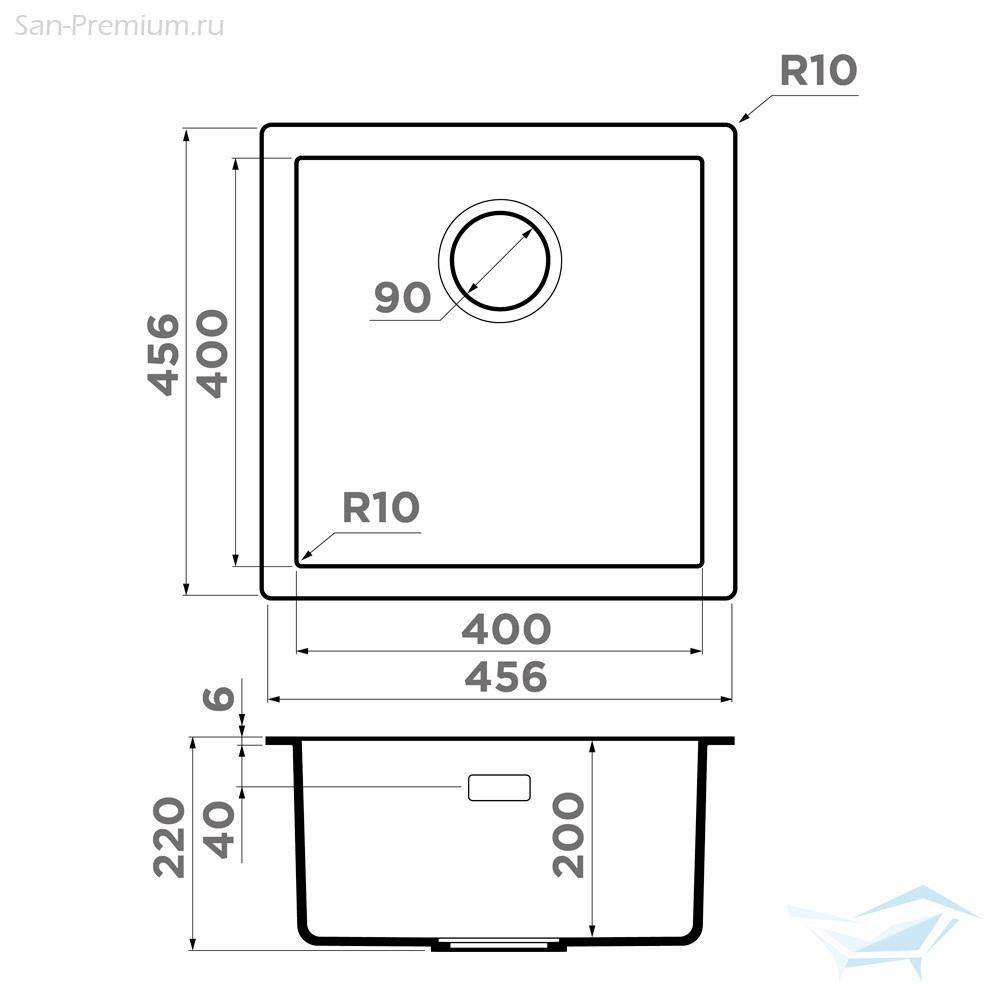 - Размер мойки (ДхШ): 456x456 мм