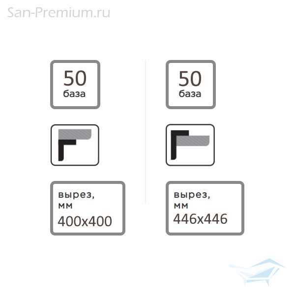 - Вырез, врезной монтаж: 446x446 мм