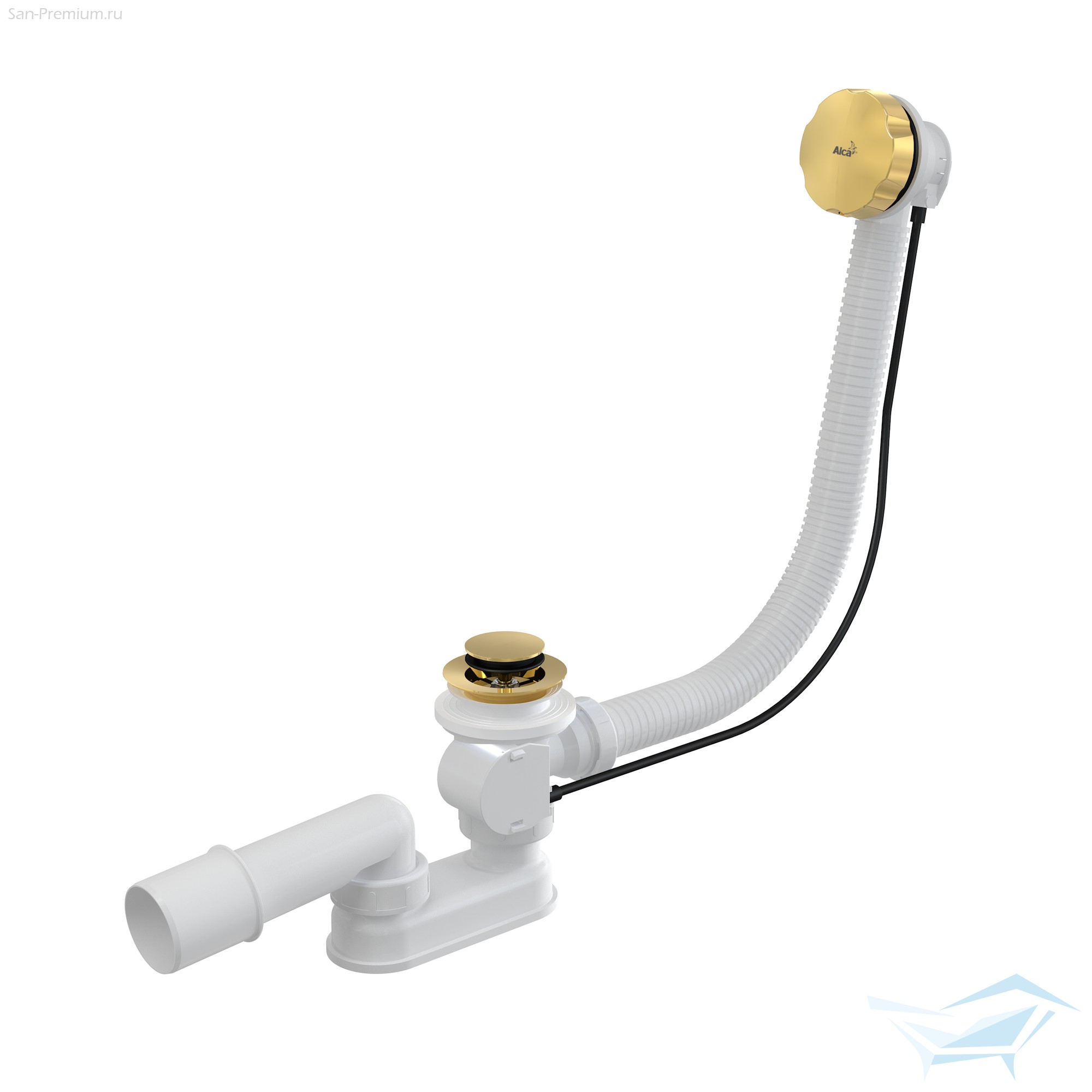 Сифон для ванны Alca VE-01 800, автомат, накладка и пробка металл, золото