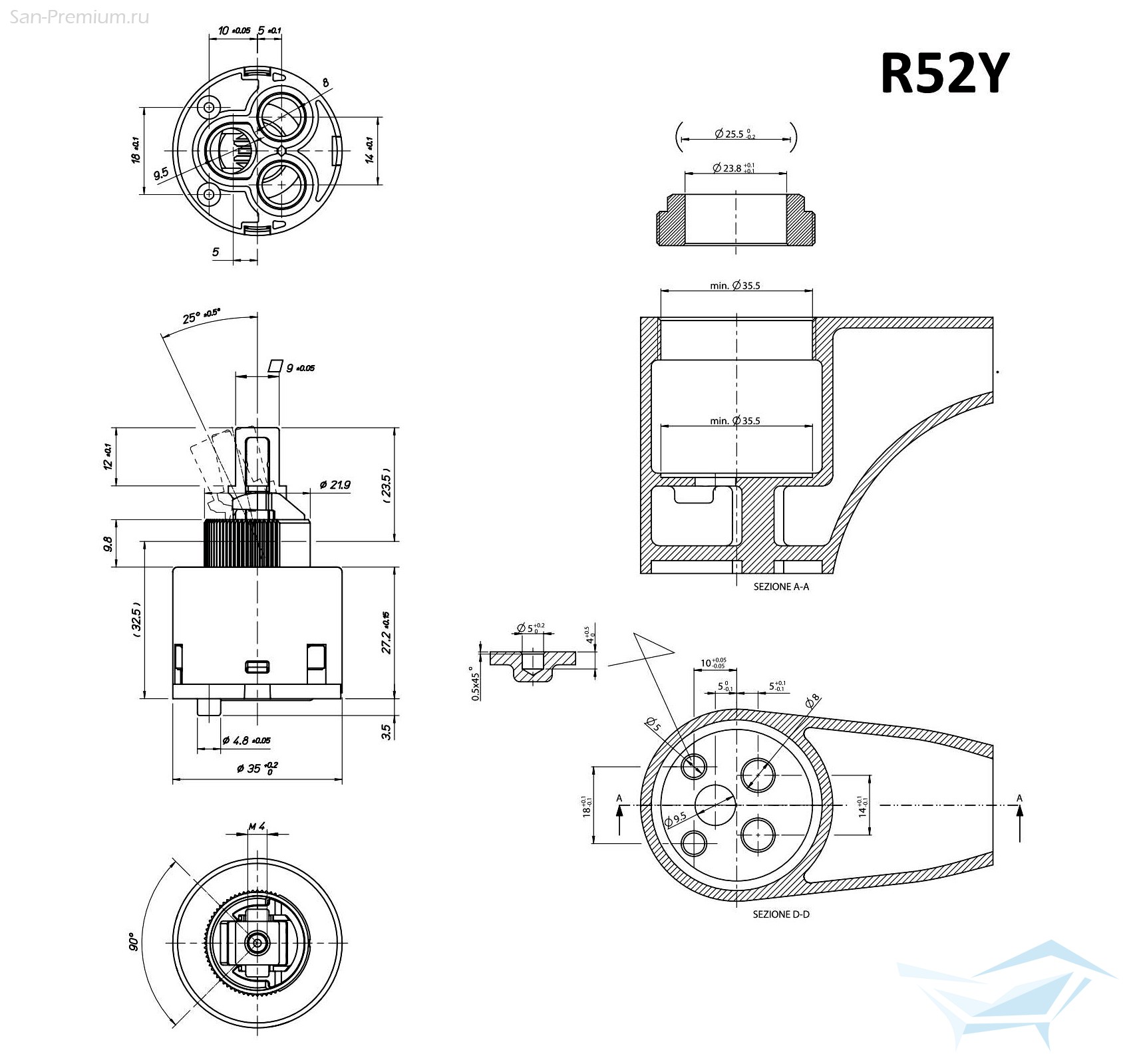 Картридж смесителя Remer, d35мм, для раковины, душа, с плоским дном R52Y