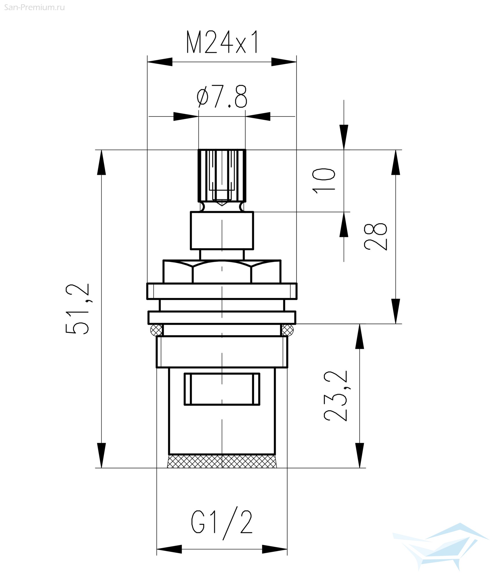 - Дополнительная резьба M24x1 (для декоративных колпачков)
