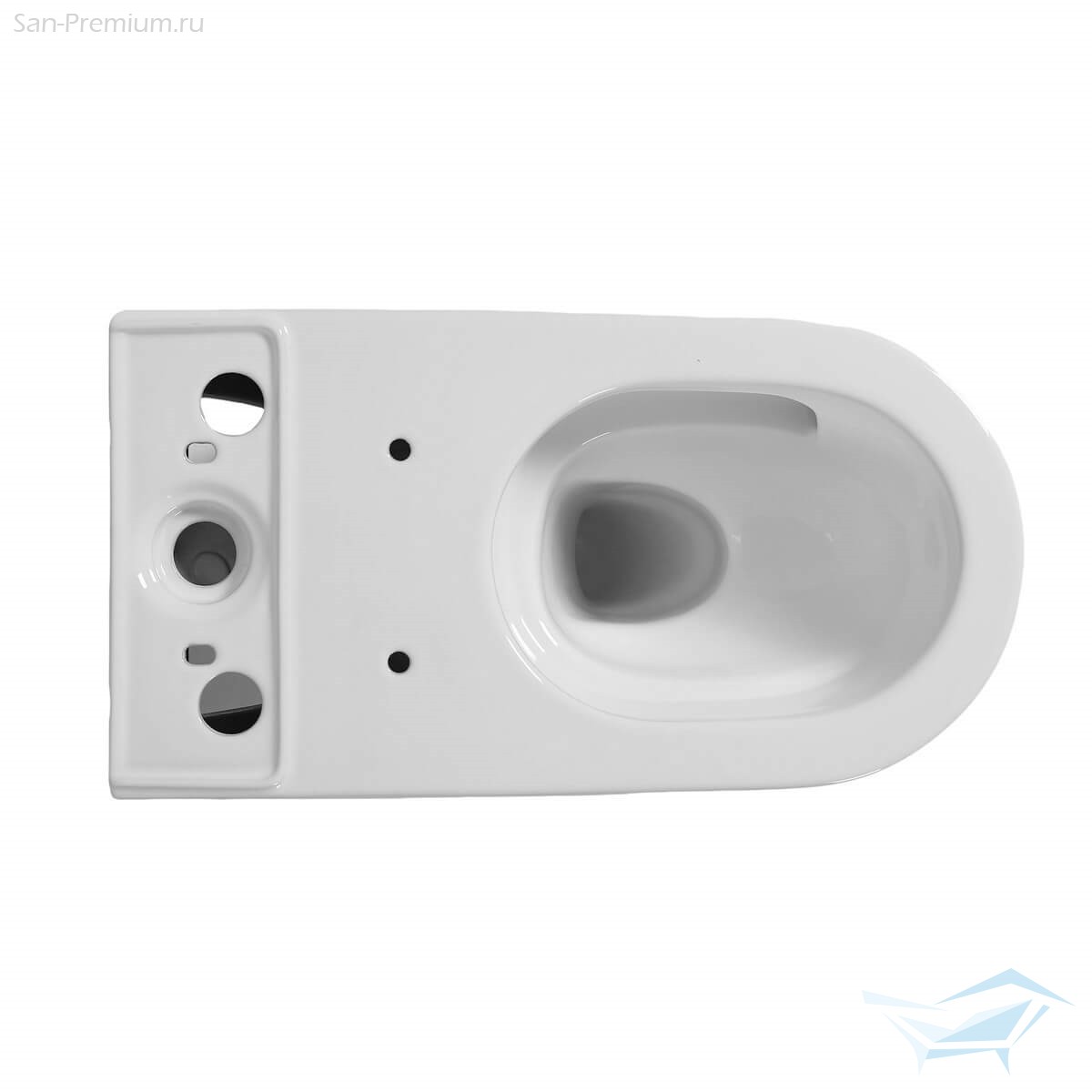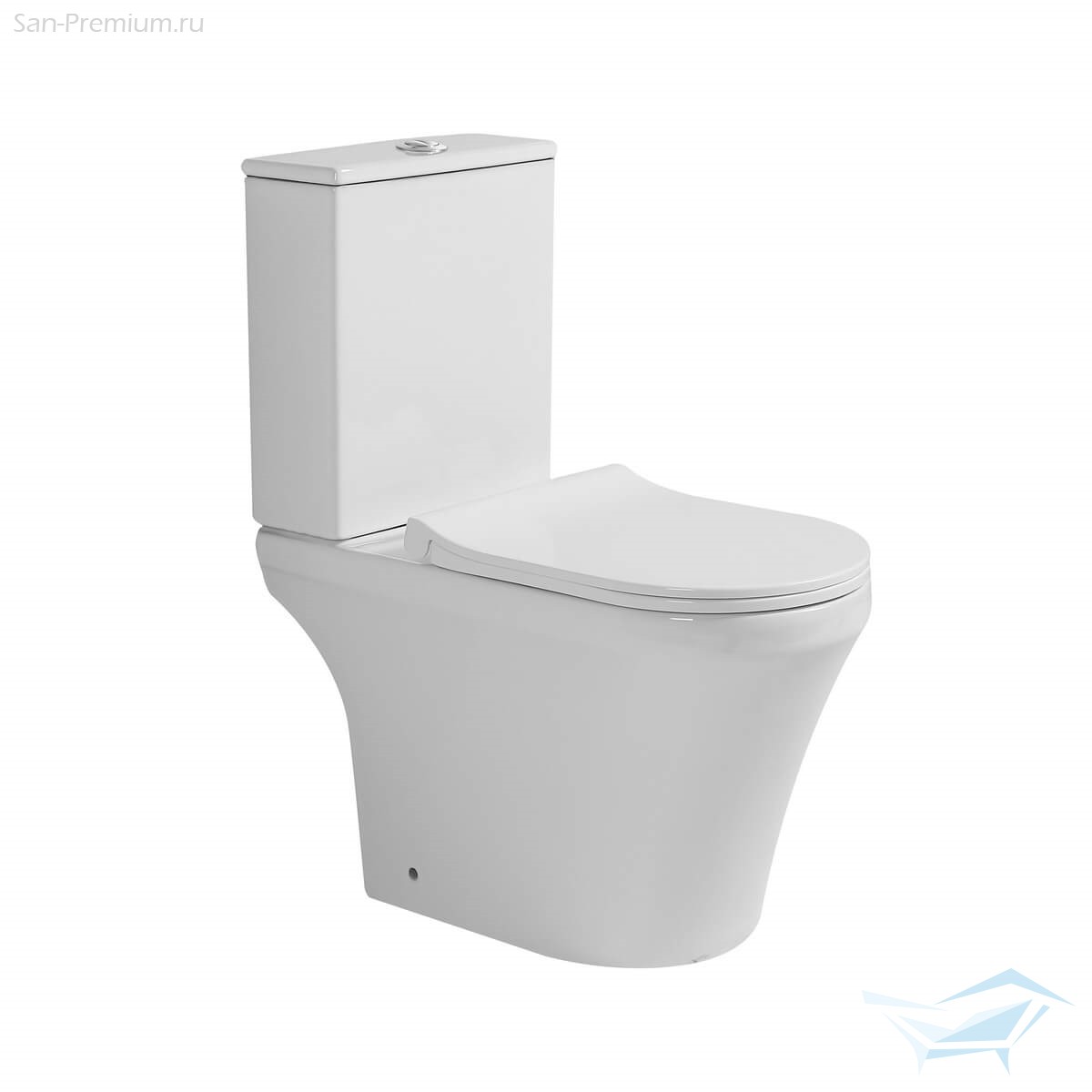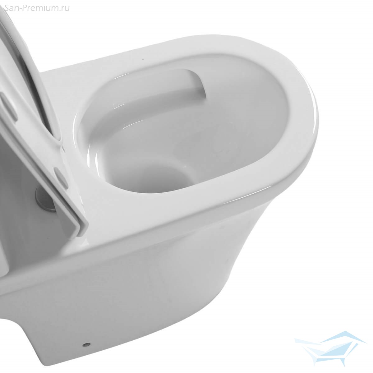 - Особенности: без ободка, сиденье с микролифтом, смыв Торнадо, сток Vario (универсальный)