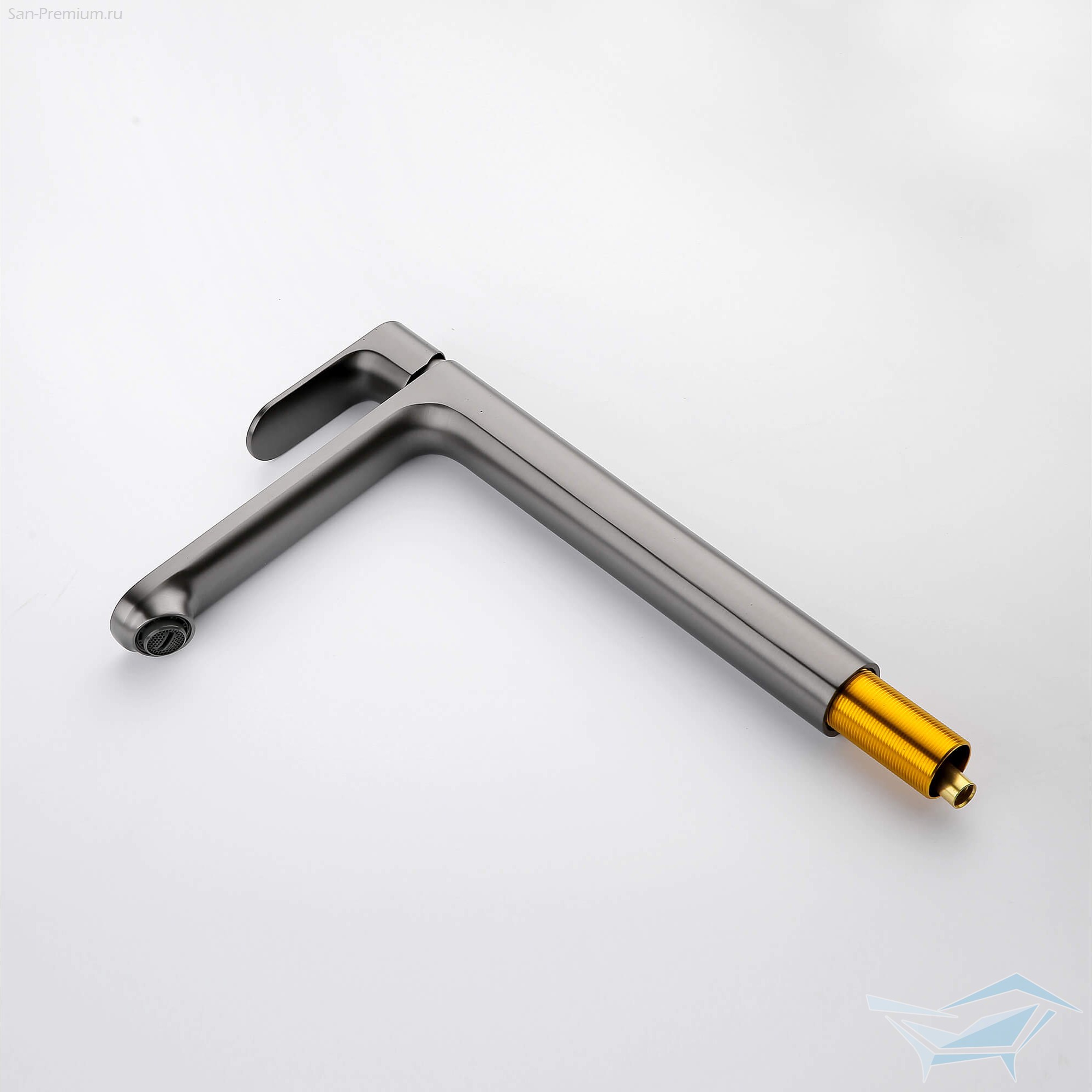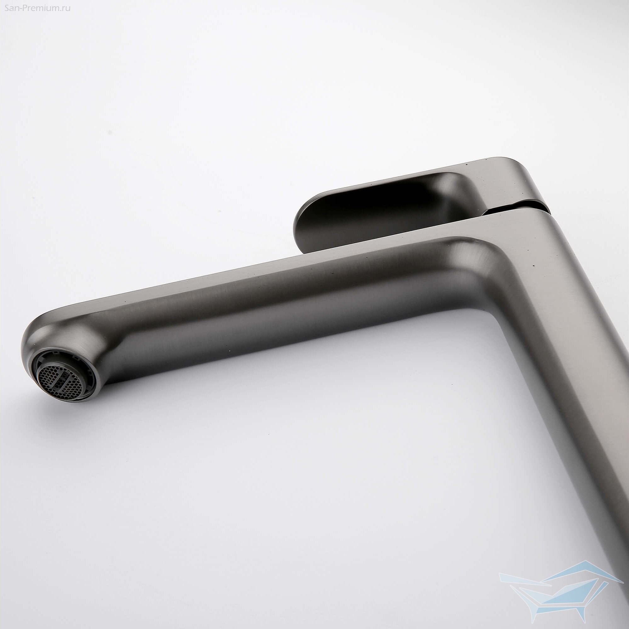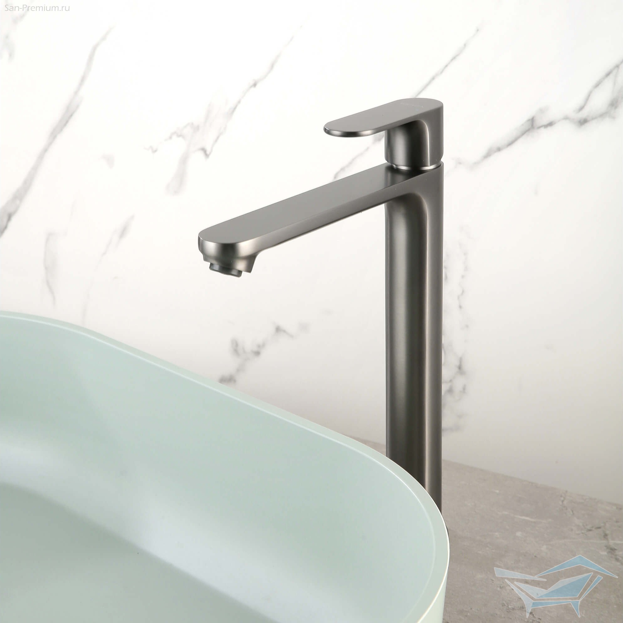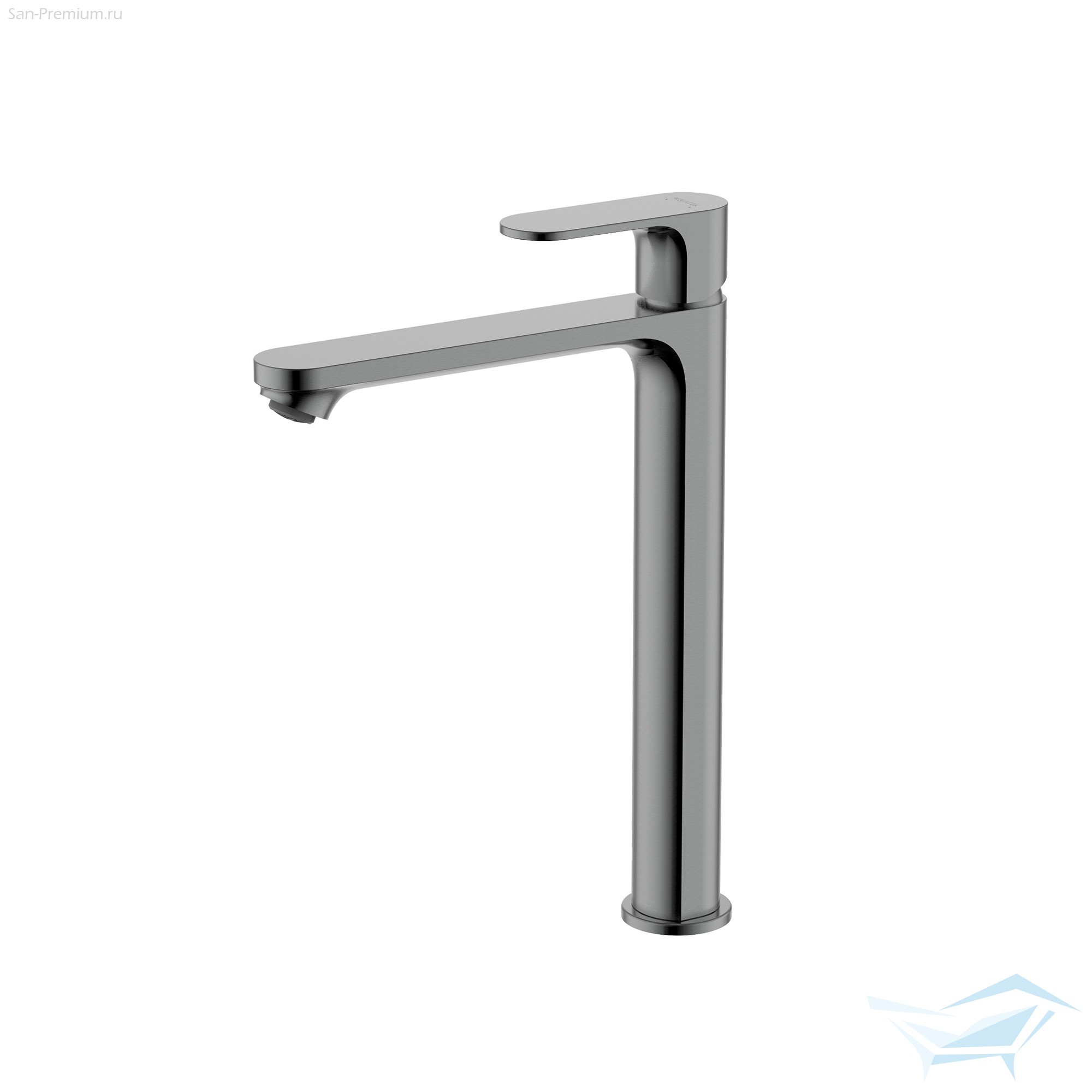 Смеситель для раковины Aquatek Альфа, высокий 245, без донного клапана, оружейная сталь