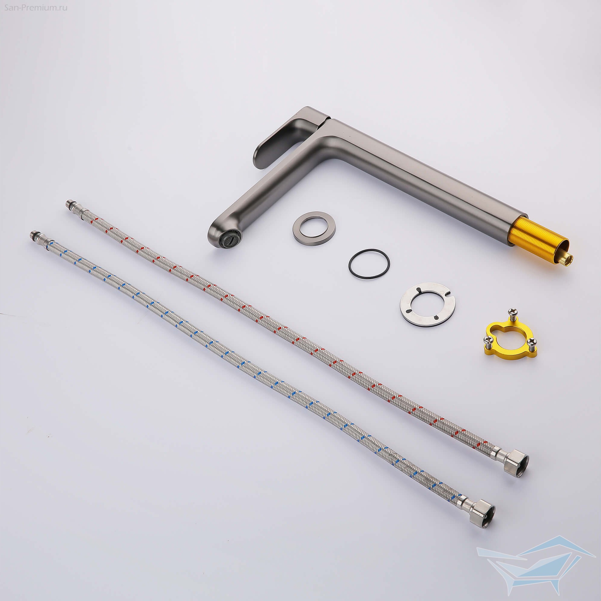 - Комплектация: смеситель, гибкая подводка, монтажный комплект